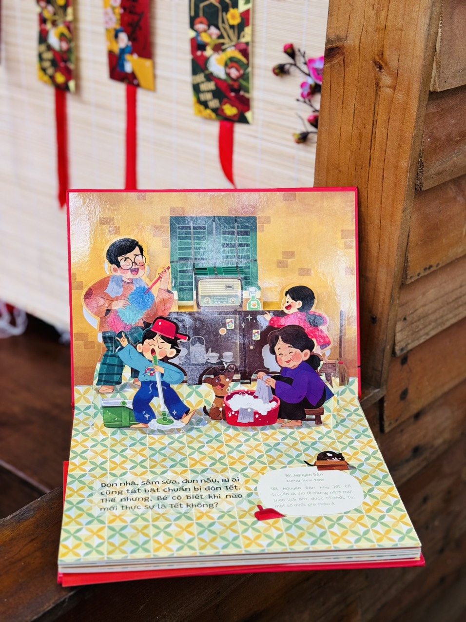 Với các hình ảnh minh hoạ rực rỡ được dựng pop up sinh động cùng phần thiết kế riêng để phụ huynh có thể tương tác với con em mình, cuốn sách về ngày Tết cổ truyền này sẽ giúp trẻ em thì làm quen, người lớn thấy sao nhớ quá, xúc động quá.