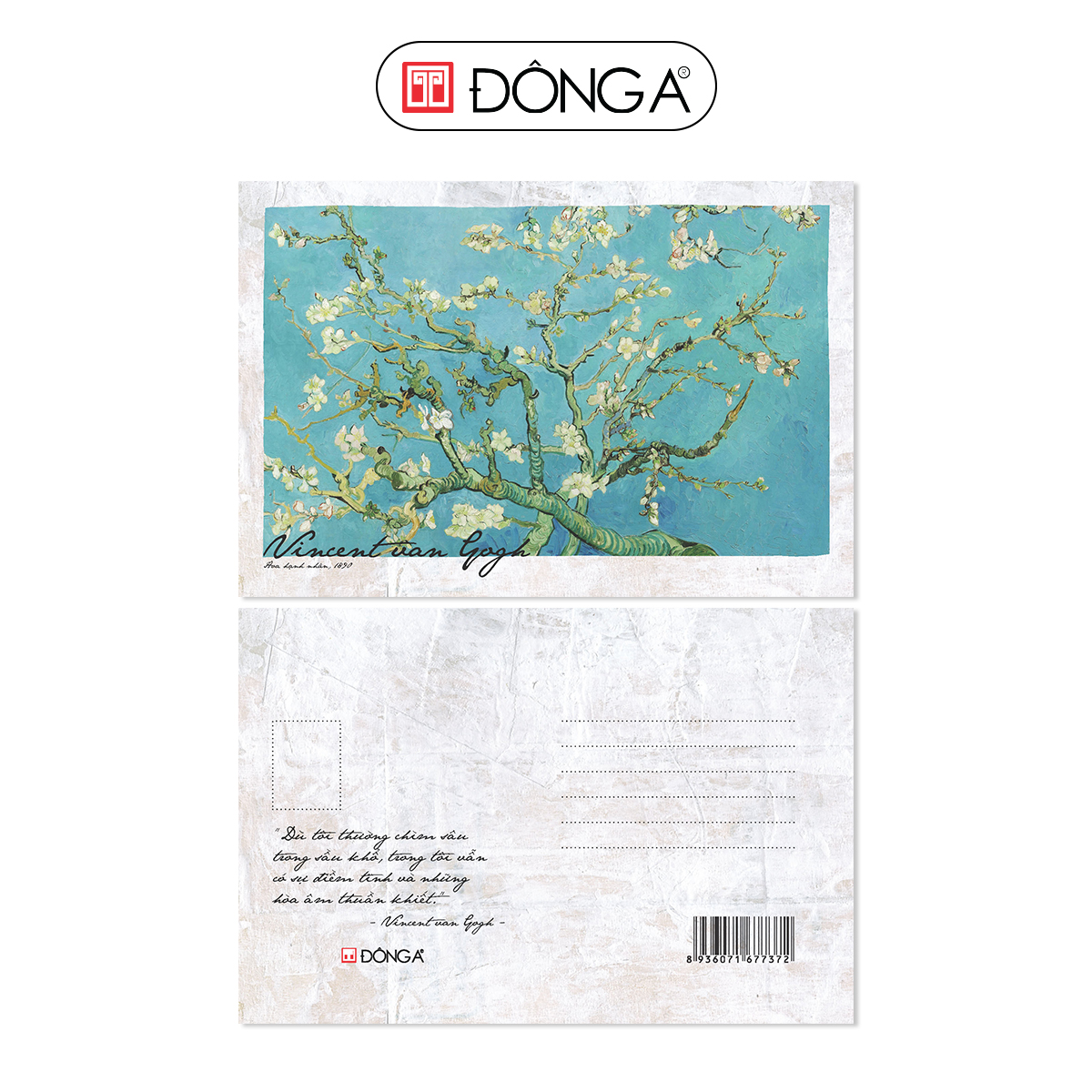 Postcard Danh Họa - Vincent Van Gogh Giấy Ivory định lượng 250 gsm, cán màng mờ 1 mặt Kích Thước : 15 x 10 cm Gồm 5 chủ đề: Postcard_Van Gogh_Con đường với cây bách và sao 1890 PostcardVan Gogh Đêm đầy sao 1889 Postcard_Van Gogh_Hoa hướng dương 1888 Postcard_Van Gogh_Hoa hạnh nhân 1890 Postcard_Van Gogh_Phong cảnh mùa xuân