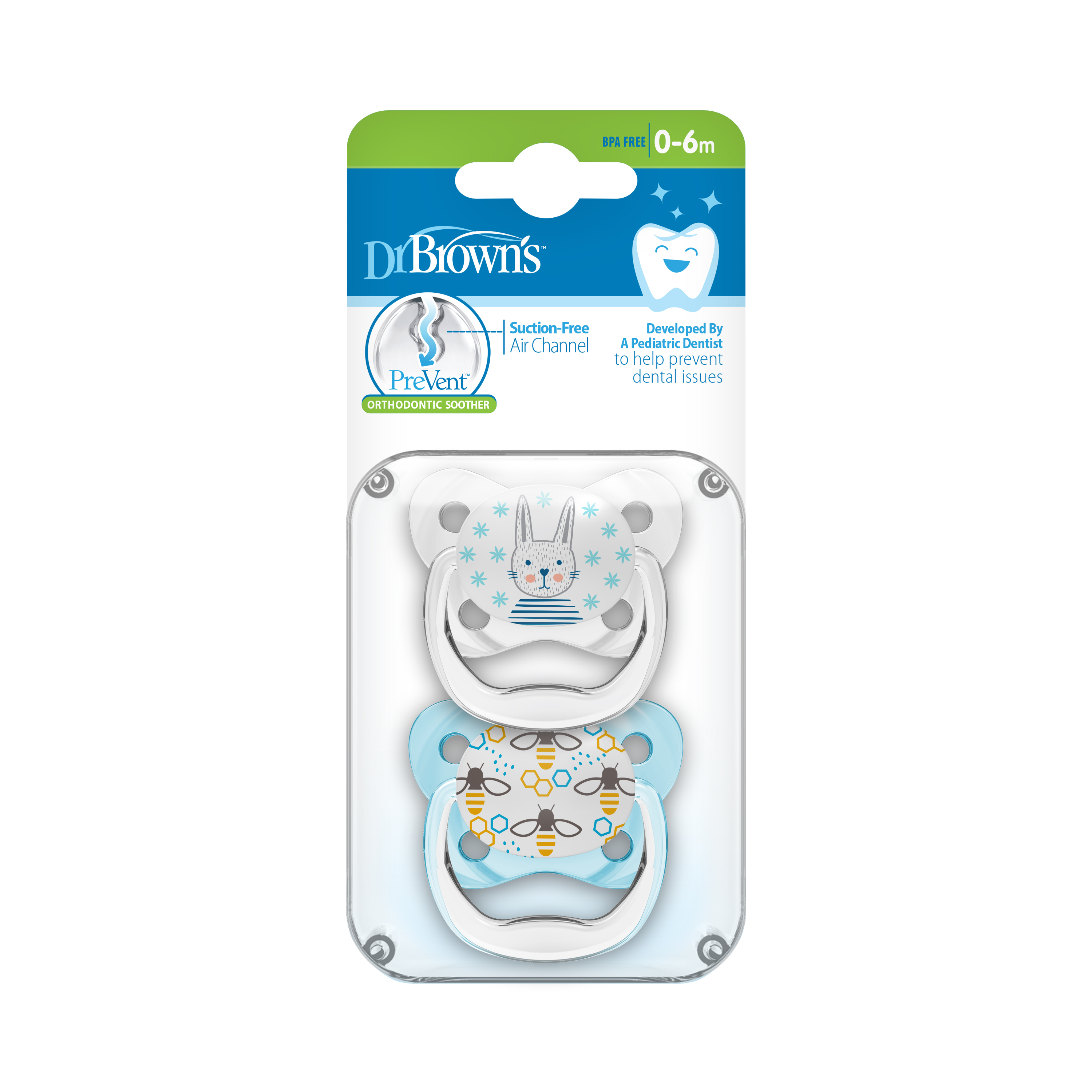 ✨[ PV12402-GBX ] Bộ 2 ty ngậm hỗ trợ chống đột tử/chỉnh nha/chống vẩu Dr.Brown's Prevent in họa tiết dễ thương ( 0-6m )
