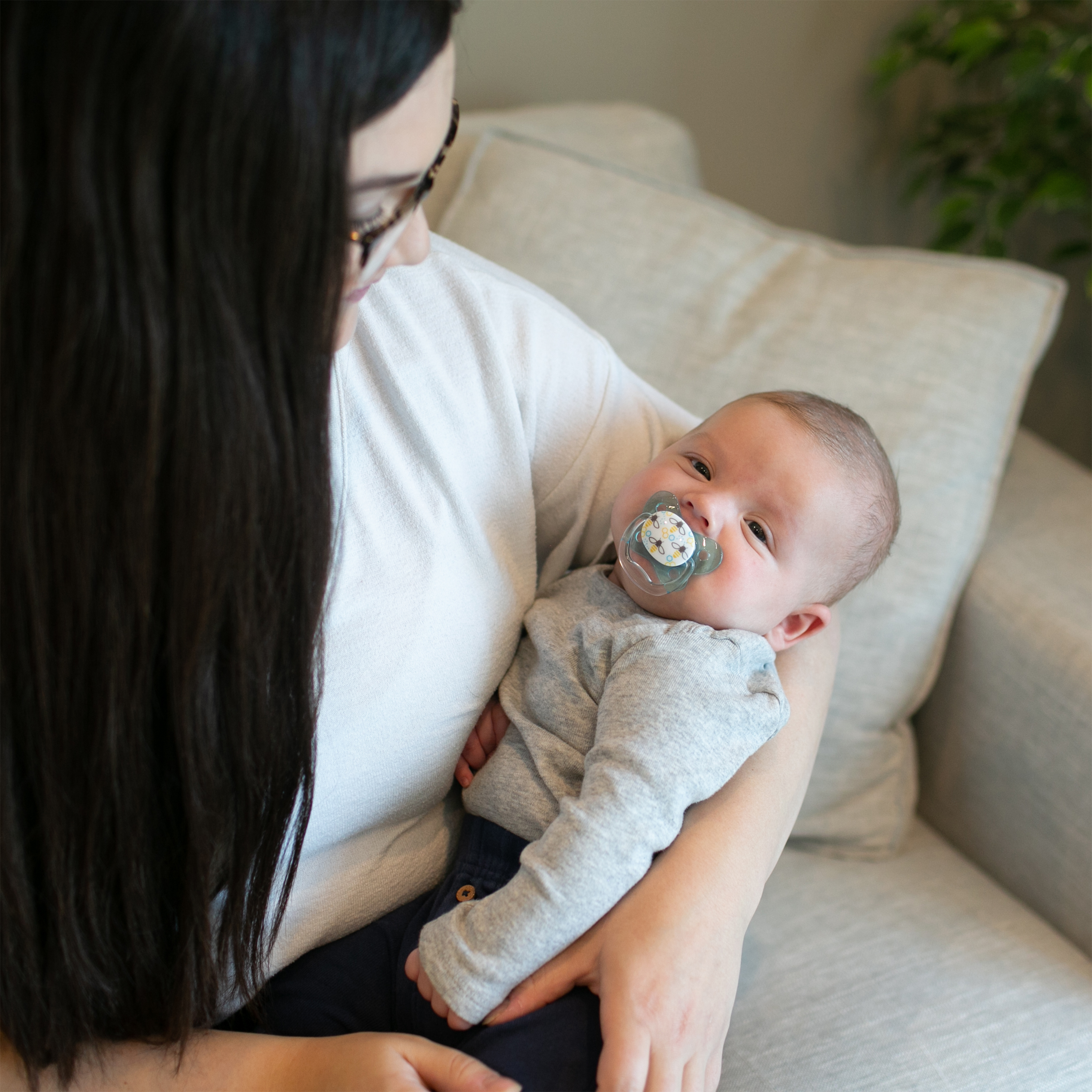 Dỗ bé bú sữa ngay từ khi sinh ra Vừa vặn, ngay cả vào ban đêm Có nút phát sáng trong bóng tối Thiết kế theo cấu trúc vòm miệng và không chứa BPA 1