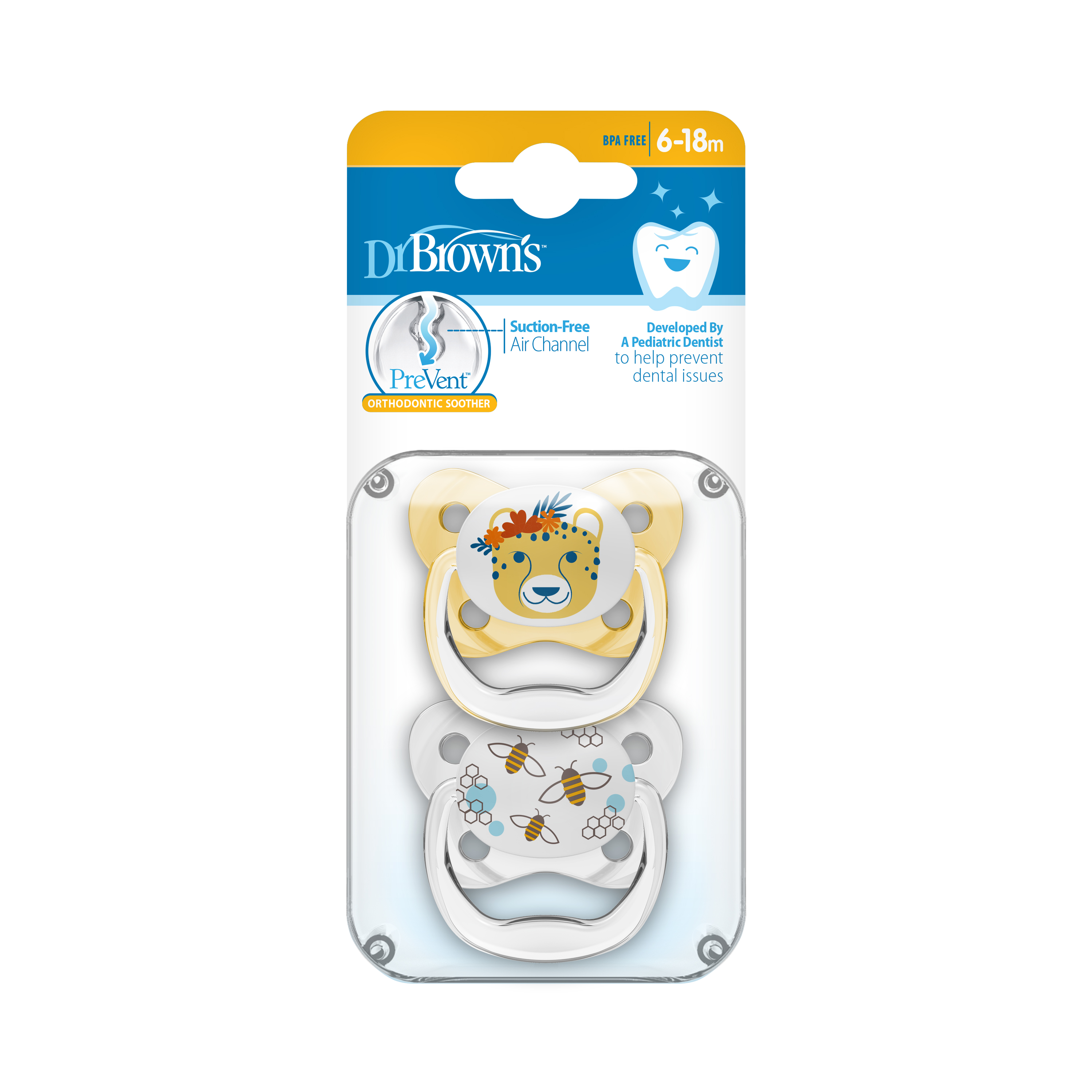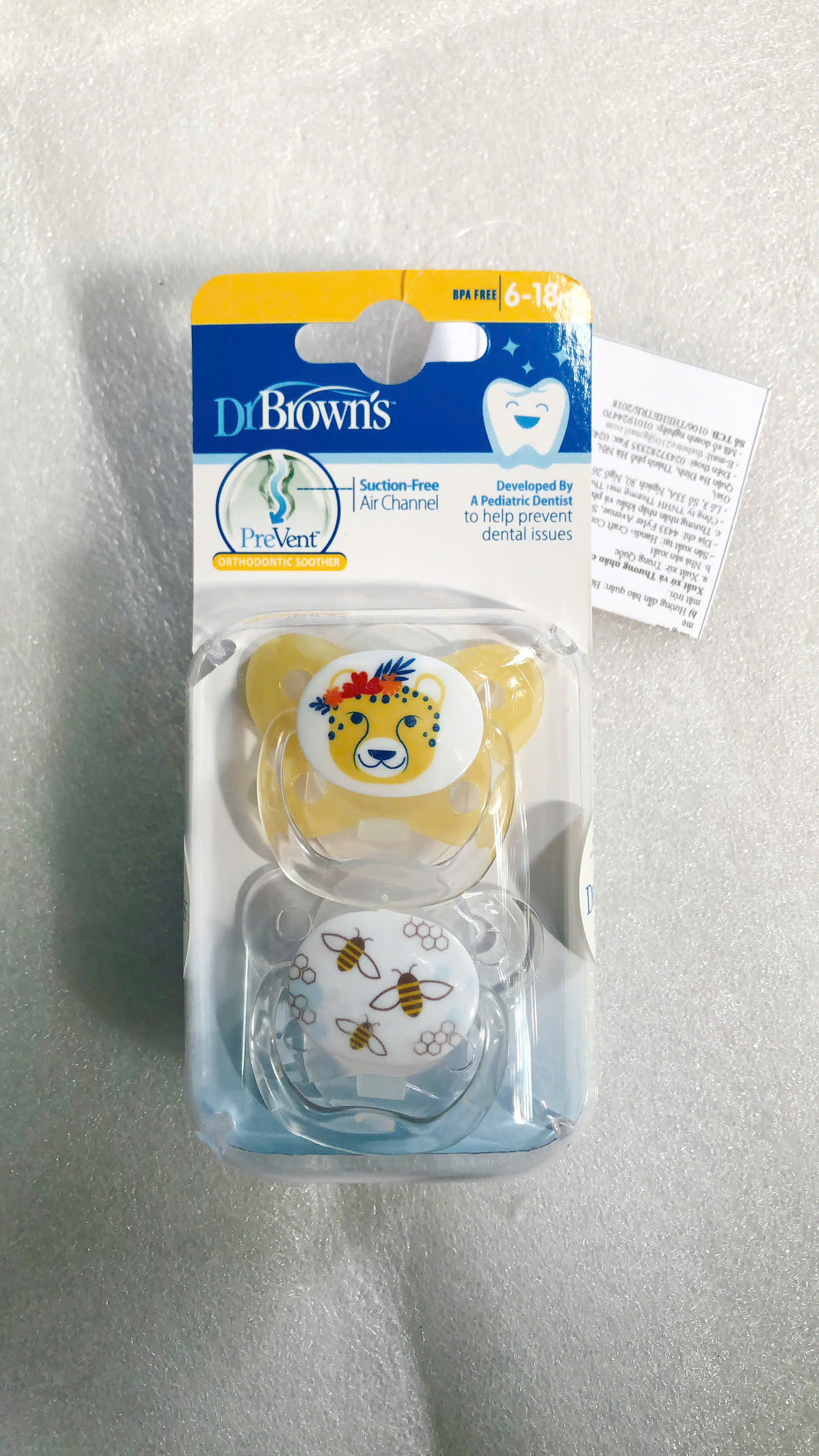 ✨[ PV22302-GBX ] Bộ 2 ty ngậm hỗ trợ chống đột tử/chỉnh nha/chống vẩu Dr.Brown's Prevent in họa tiết dễ thương ( 6-18m )
