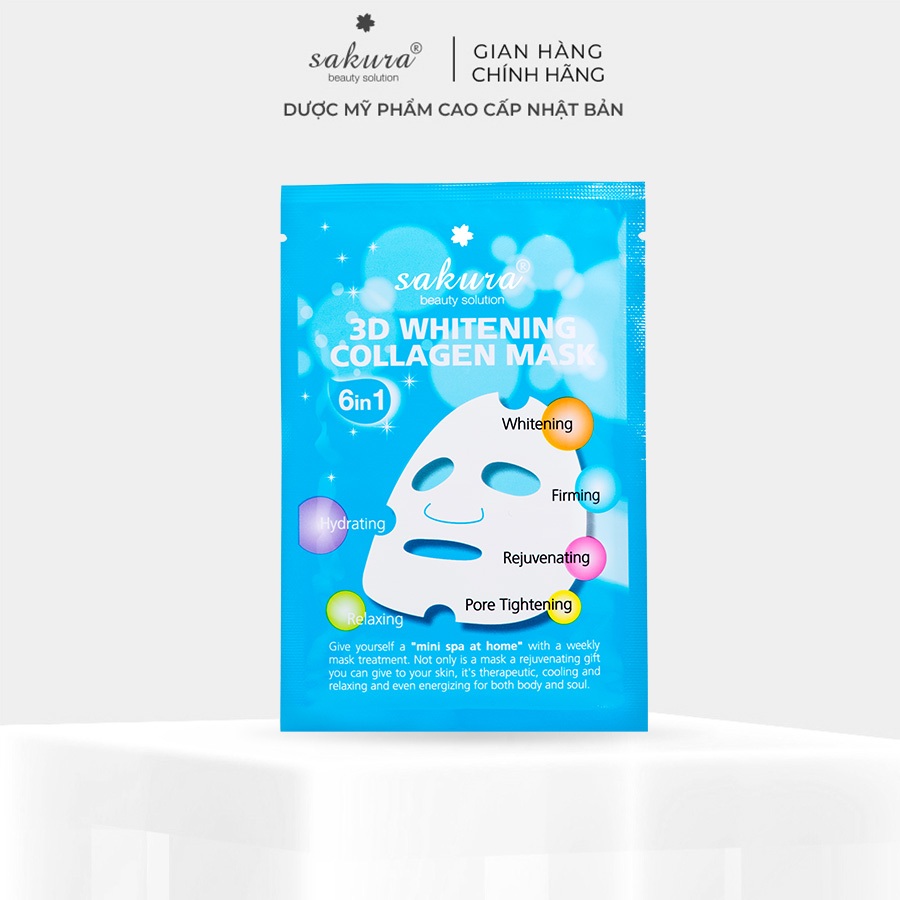 MẶT NẠ DƯỠNG TRẮNG DA NÂNG CƠ MẶT SAKURA 3D WHITENING COLLAGEN MASKMặt nạ dưỡng trắng da Sakura 3D Whitening Collagen Mask khi sử dụng còn giúp nở rộng và làm thông thoáng nang lông, tạo điều kiện ch...