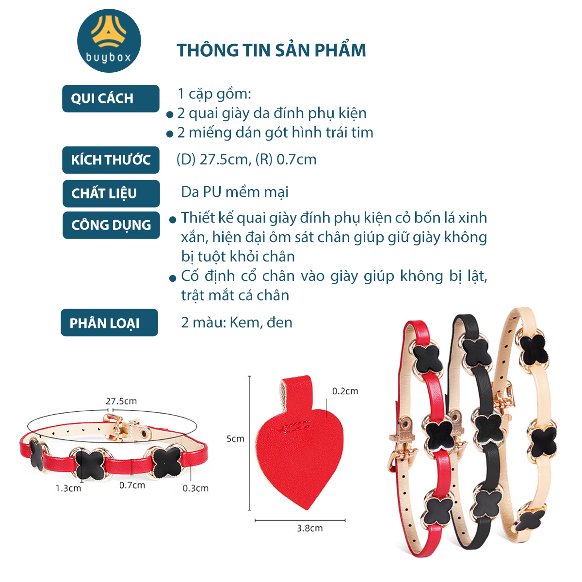 Thiết kế quai giày đính phụ kiện cỏ bốn lá xinh xắn, hiện đại ôm sát chân giúp giữ giày không bị tuột khỏi chân khi bàn chân nhấc lên cất bước, đồng thời cổ chân cũng được cố định vào giày giúp không bị lật, trật mắt cá chân