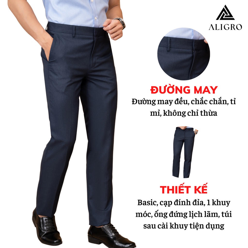 ✨Quần âu nam ALIGRO màu navy kẻ vuông to chất liệu cao cấp, chuẩn form, tôn dáng ALGO1031