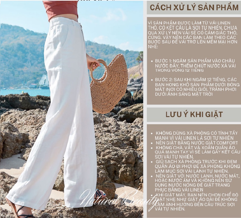 Quần nữ ống rộng, chất liệu Linen loại 1, quần kiểu nữ form rộng rãi, thoải mái. THÔNG TIN SẢN PHẨM: 1. Tên sản phẩm: Quần nữ ống rộng, quần kiểu nữ form rộng NeSa