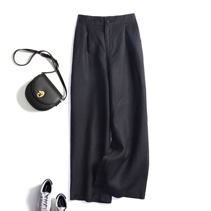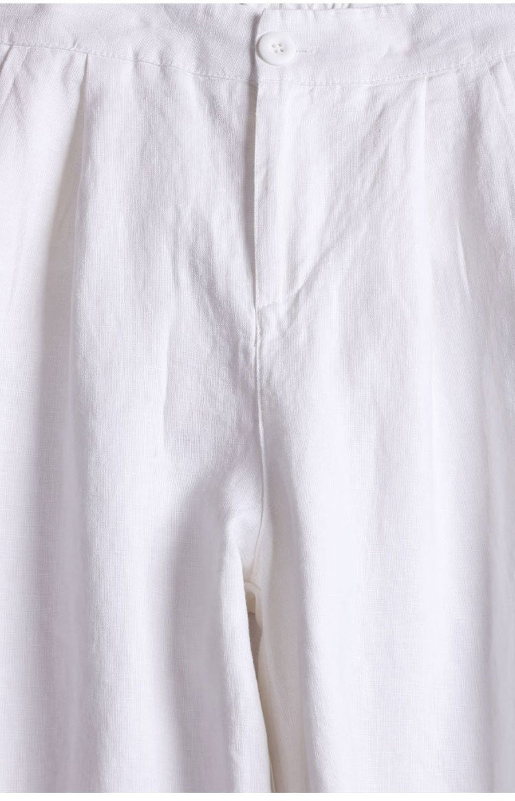 THÔNG TIN SẢN PHẨM: - Sản phẩm: Quần dài nữ - Chất liệu: Linen - Đặc điểm: Ống rộng, Đũng ngắn, Lưng thun - Kích thước: M, L, XL, 2XL - Màu sắc: Trắng,Đen,Be,Muối