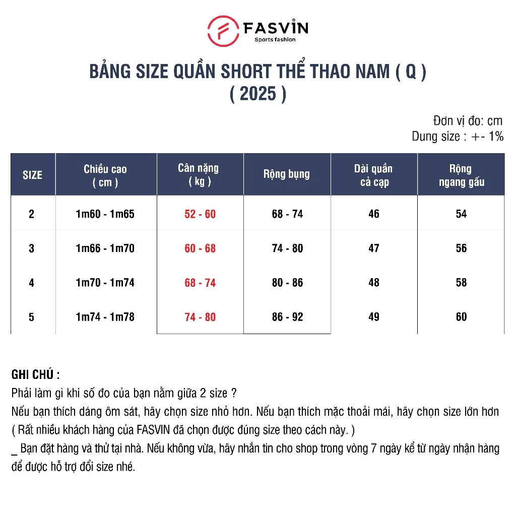 - KIỂU DÁNG QUẦN Q25658 : Đứng dáng vừa vặn mang đến phong cách khỏe khoắn, trẻ trung và thoải mái. Quần đùi nam FASVIN có chiều dài gần đến gối, phom dáng vừa vặn rất hợp với thể hình người Việt. Quần được thiết kế đơn giản tiện dụng, hai túi sườn và túi sau đều có khoá kéo tiện lợi. Cạp chun có dây rút dễ dàng điều chỉnh. Quần thiết kế trơn với màu sắc đơn giản, nam tính dễ mặc dễ phối. Logo cao su sắc nét. Quần xẻ tà trẻ trung, khoẻ khoắn *CHẤT LIỆU : 95% polyester + 5% spandex trơn mát co giãn. _ Mặt vải bền chắc có khả năng chịu lực giằng xé tốt. Đây là loại vải các hãng thể thao lớn thường may quần Tennis. => LƯU Ý : Tuỳ từng cây vải khác màu mà chất vải cũng có sự khác biệt. Hãy nhắn tin cho shop để được tư vấn nhé.