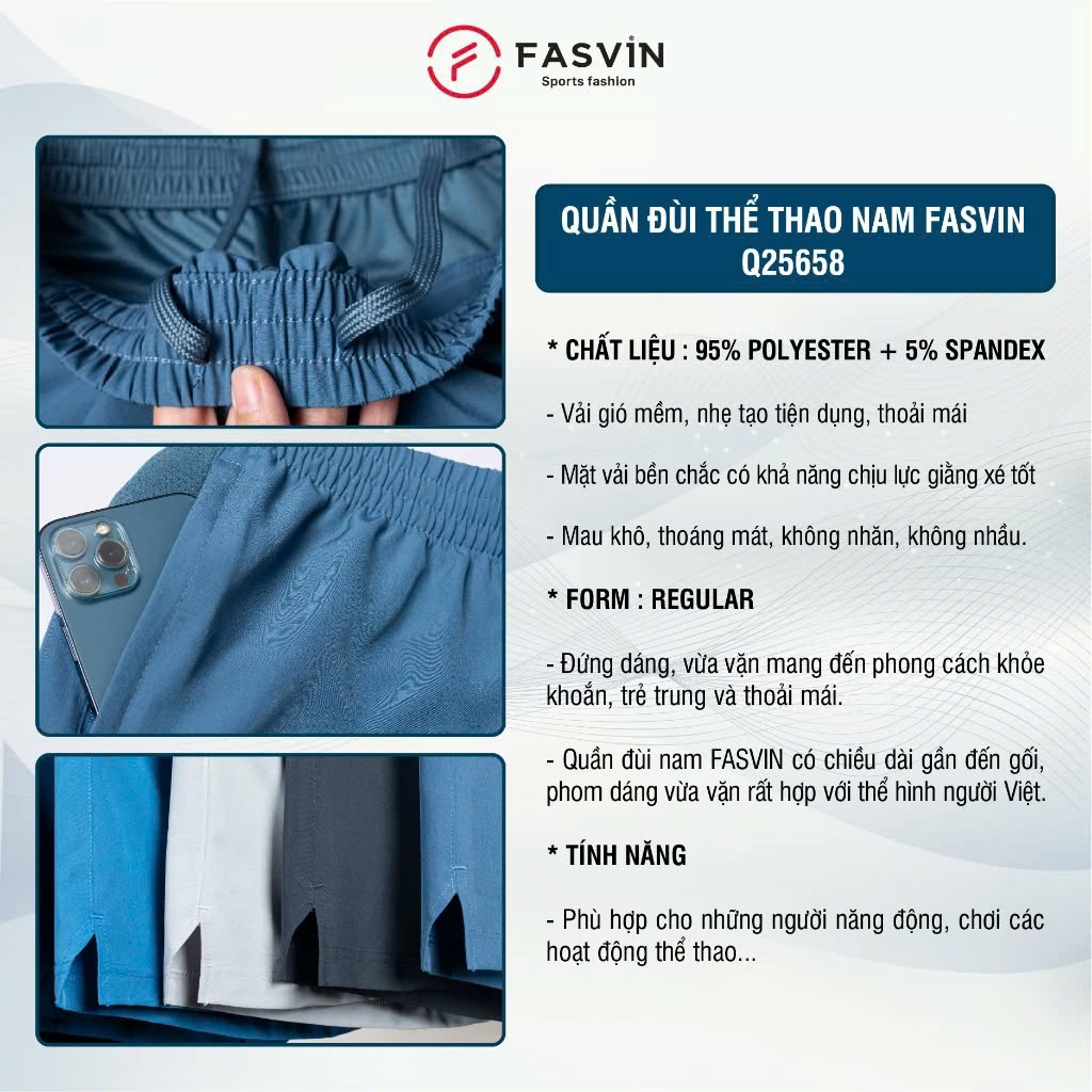 Mua tại Tiktok=> Các shop có thương hiệu đều luôn giữ gìn uy tín của mình. Đến với FASVIN bạn cũng sẽ nhận được điều đó. _ Trước khi mua bạn nên tham khảo đánh giá và chat với shop để nhận được tư vấn từ người bán. => Quần Đùi Nam FASVIN Vải Gió Đẹp Hàng Nhà Máy Chất Lượng Cao Q25658.HN sản xuất trong nhà máy của FASVIN tại Việt Nam. Với quy trình thu hóa nghiệm ngặt, các sản phẩm đều được làm ra một cách cẩn thận và chắc chắn. * TÍNH NĂNG NỔI BẬT: