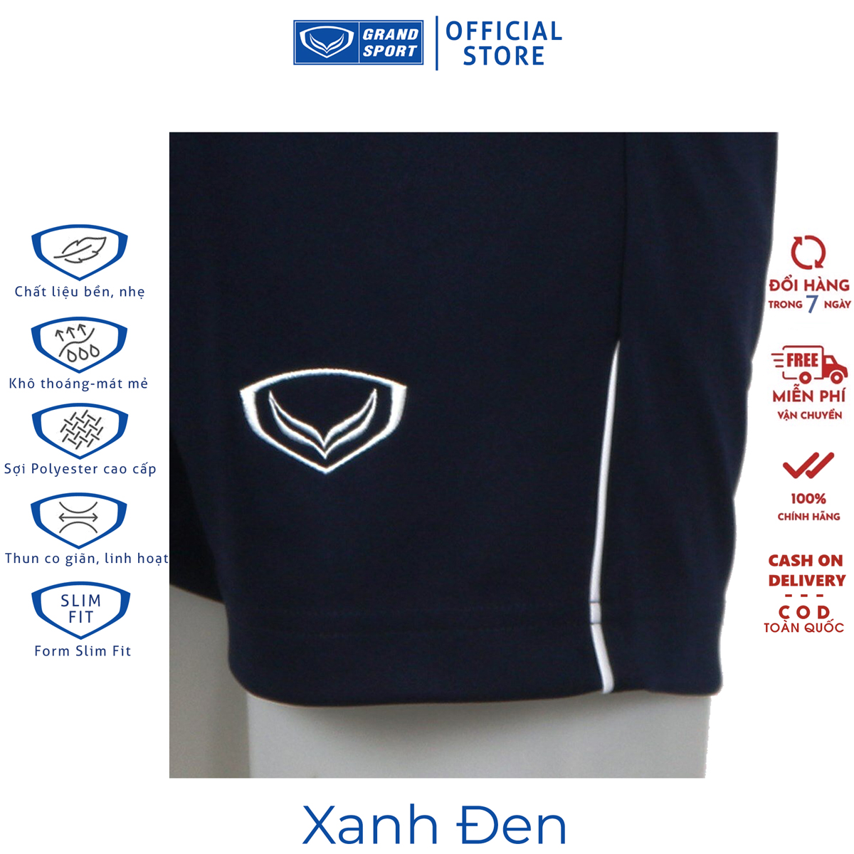 Mô tả sản phẩm Quần Đùi Thể Thao có túi Grand Sport 001-495 thun polyester co giãn siêu nhẹ thoáng mát siêu bền nhanh khô • Công nghệ Softext - 100% Polyester   • Siêu nhẹ, thoáng khí   • Thiết kế đặc biệt   • Kiểu dáng thời trang   Giới thiệu sản phẩm Quần Đùi Thể Thao có túi Grand Sport 001-495 thun polyester co giãn siêu nhẹ thoáng mát siêu bền nhanh khô   GRAND SPORT - thương hiệu trang phục và thiết bị thể thao “Made in Thailand” - được thành lập năm 1961. Với hơn 50 năm kinh nghiệm, GRAND SPORT được biết đến trong khu vực Châu Á, đặc biệt là khu vực Đông Nam Á bởi các sản phẩm mẫu mã đẹp, chất lượng cao và giá thành hợp lý.   Tại Việt Nam, GRAND SPORT là đơn vị tài trợ trang phục chính thức của các Đội Tuyển Bóng Đá Quốc gia và là lựa chọn hàng đầu của hàng trăm đội bóng đá chuyên nghiệp, phong trào và bóng chuyền trên khắp Việt Nam.   ĐẶC ĐIỂM NỔI BẬT   Chất liệu Softext Plus - 100% Polyester   Grand Sport áp dụng công nghệ độc quyền tiên tiến nhất - siêu nhẹ, thoáng khí mang lại sự thoải mái và linh hoạt khi vận động.   Thiết kế đặc biệt và kiểu dáng thời trang   Nổi bật nét cá tính riêng của khách hàng.       HƯỚNG DẪN BẢO QUẢN