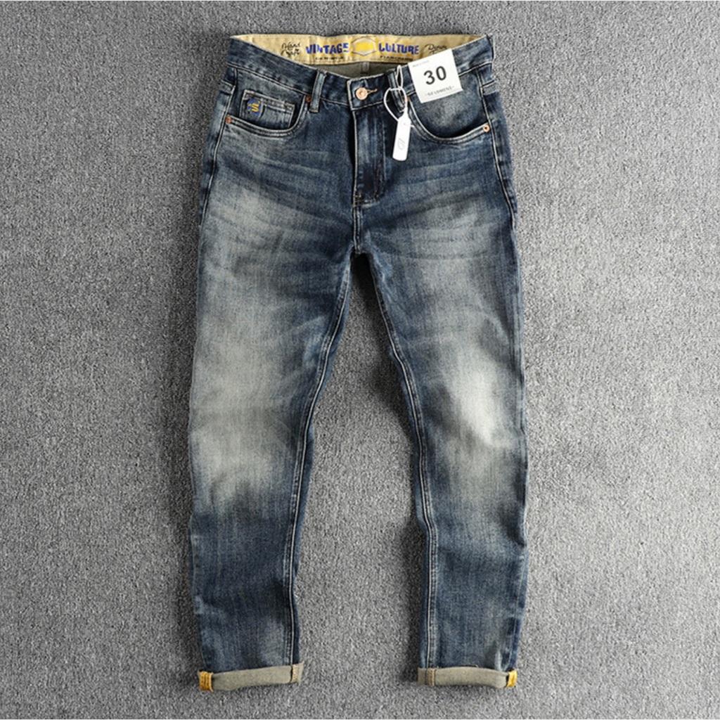 Quần jean co giãn Retro_dã ngoại_phượt Hàng Handmade Chất liệu jean được wash acid nhẹ lên phom cực đẹp Ống quần hơi ôm nhẹ tôn dáng người mặc Size từ 28 đến 38 ( cho