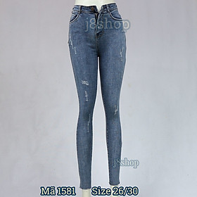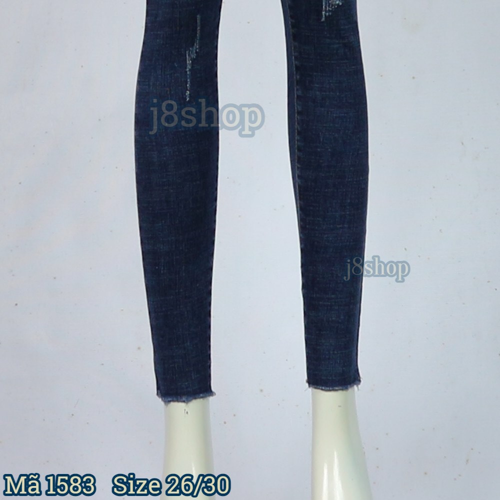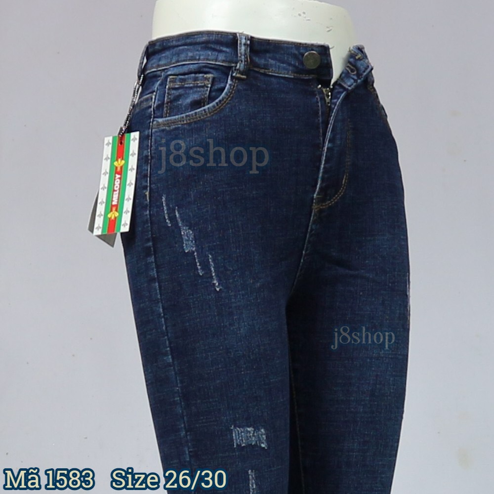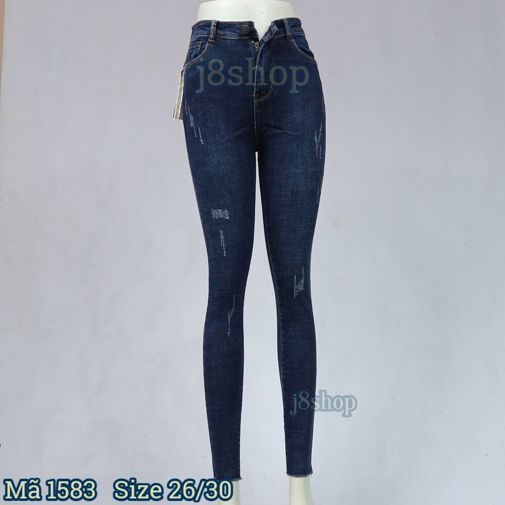 Quần Jean Nữ Lưng Cao Có Cúp Ngang Kiểu Cào Xước Nhẹ Màu Xanh Đậm Size 26-30 Ms 062