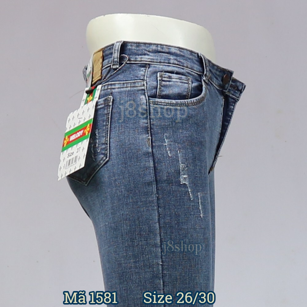 MÔ TẢ SẢN PHẨM – Quần jean nữ lưng siêu cao có cúp ngang – Chất liệu cotton có co giãn – Kiểu cào xước nhẹ – Tua lai – Màu xanh 3 màu đậm nhạt – Size 26/30     Hướng dẫn chọn size và sử dụng    Tùy theo loại sản phẩm mà có size khác nhau, nên xin khách yêu chọn size cho đúng để  shop giao hàng thuận tiện.   • Size 26: Từ 35kg đến 42kg (Tương đương size S) • Size 27: Từ 43kg đến 45kg (Tương đương size M) • Size 28: Từ 46kg đến 48kg (Tương đương size L) • Size 29: Từ 49kg đến 51kg (Tương đương size L) • Size 30: Từ 52kg đến 55kg (Tương đương size XL)    Lưu ý:   - Bảng size này chỉ mang tính tham khảo, sản phẩm có thể tồn tại sai số đo 2-3cm, nếu không chắc hãy chat với  shop trước khi đặt hàng. - Khách yêu nên tăng size nếu khách dáng MẬP VÀ THẤP HOẶC khách yêu nên giảm size nếu dáng GẦY VÀ CAO. - Nếu khách yêu có bất kỳ vấn đề nào như giao hàng chậm, hàng hoặc bị lỗi, bạn vui lòng liên hệ với chúng tôi trước theo thông tin bên dưới - Khách yêu vui lòng không đánh giá sản phẩm quá vội vàng mà hãy đợi shop trong phản hồi nhé. Chúng tôi sẽ cố gắng hết sức để giải quyết vấn đề cho bạn khi nhận được phản hồi từ bạn. - Hãy đánh giá 5 nếu bạn thấy ưng ý với sản phẩm nhận được vì đó là động lực giúp shop phát triển hơn      Hướng dẫn giặt sản phẩm - Không dùng thuốc tẩy - Giặt với nước ấm khi cần thiết - Không giặt chung với quần áo trắng - Lộn trái sản phẩm trước khi giặt - Không giặt khô         "
