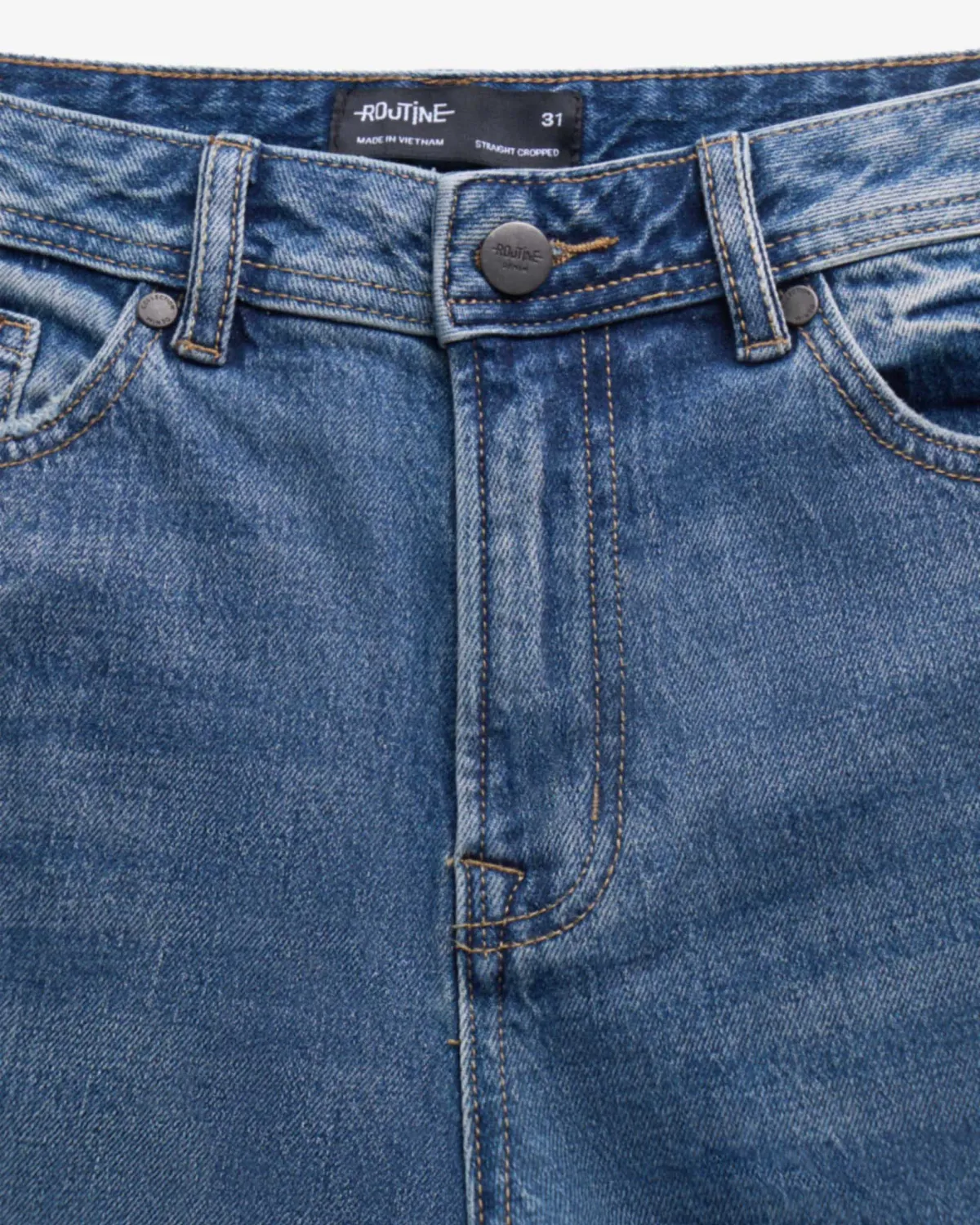 Quần denim nam Form Slim cropped - RT 10S25DPA105C | ROUTINE CÀ MAU Đặc điểm nổi bật Form : Slim cropped Fabric : Denim Gender: Nam Collection: Core Thông tin chi tiết: Mẫu quần denim