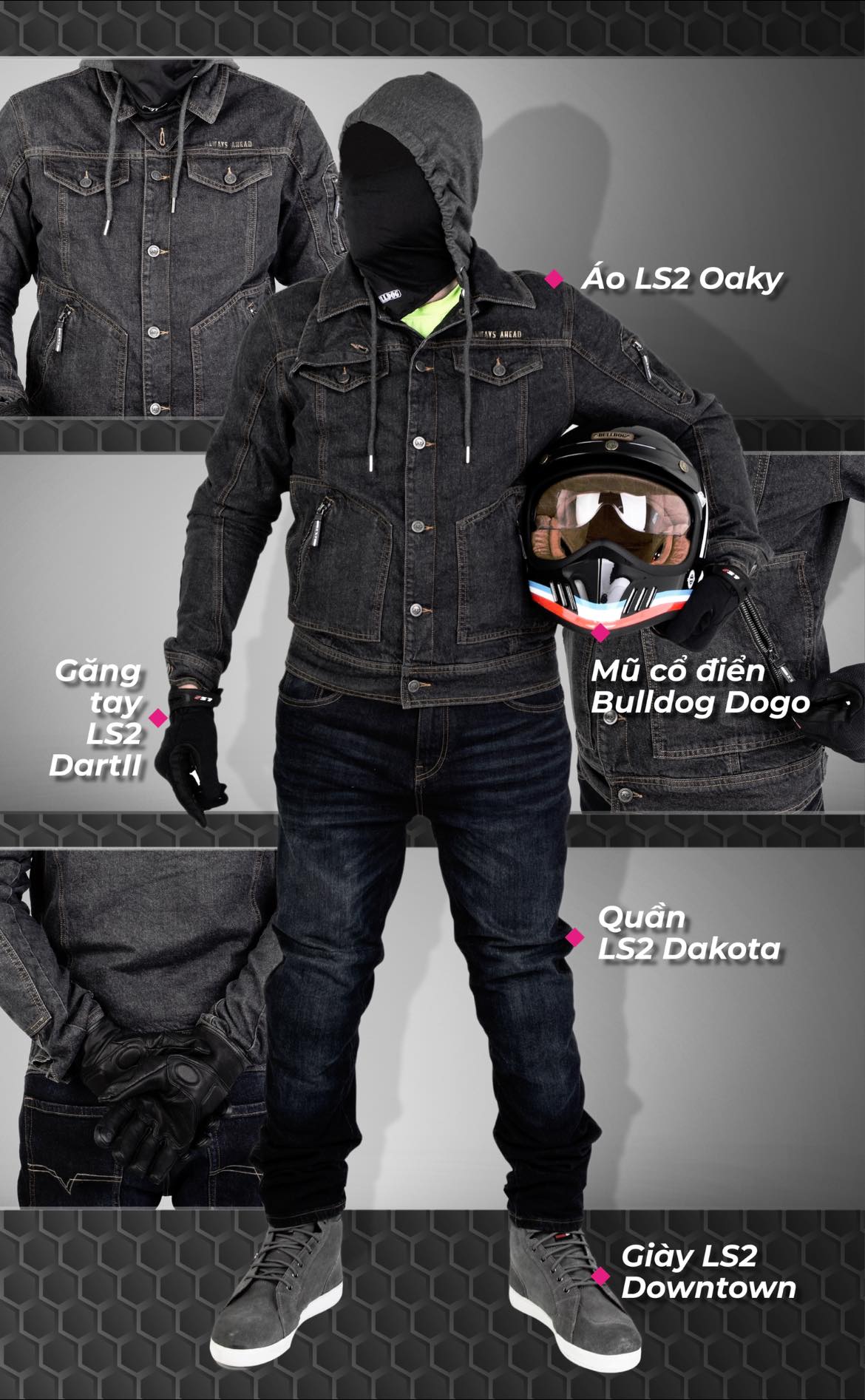Phù hợp dùng chung áo Jean LS2 Oaky đi phố hằng ngày, hoặc áo LS2 Airy/ Alba/ Riva/ Norway để đi đường dài.