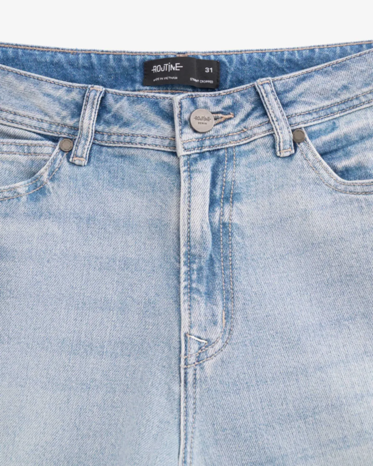 Quần denim nam Form Slim cropped - RT 10S25DPA105C | ROUTINE CÀ MAU Đặc điểm nổi bật Form : Slim cropped Fabric : Denim Gender: Nam Collection: Core Thông tin chi tiết: Mẫu quần denim