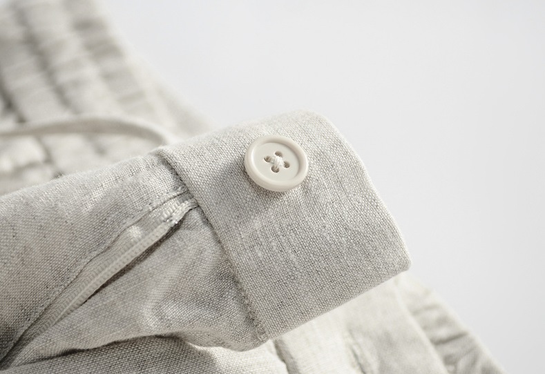 ✨Quần linen nam ống suông, quần dài ống rộng cạp chun có dây rút và khuy trước, phong cách tối giản, vintage Qd11