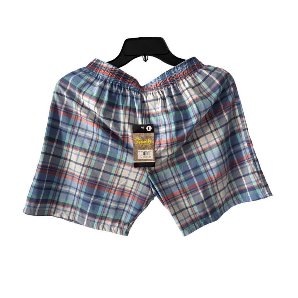 'Quần đùi lưng thun thoải mái cho hoạt động hàng ngày • Họa tiết caro đa dạng • Thấm hút mồ hôi • Thích hợp cho ngày hè nắng nóng. Chất liệu: 100% Cotton, Form