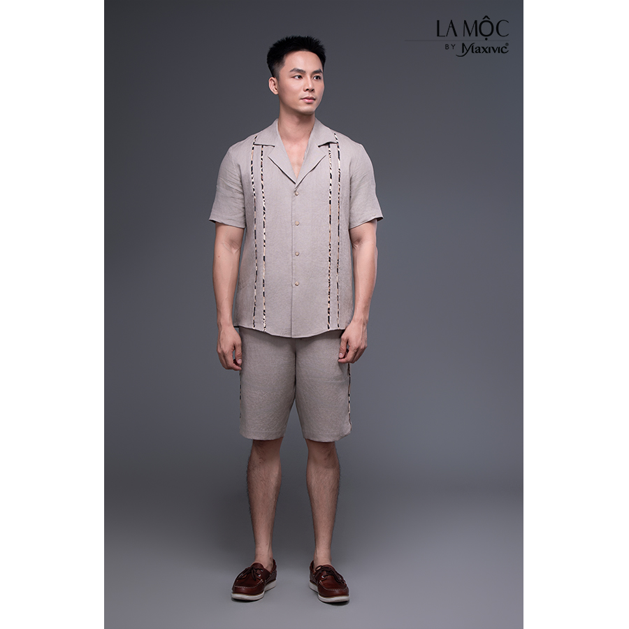 ✨Quần nam linen kem sẫm ngắn viền sườn