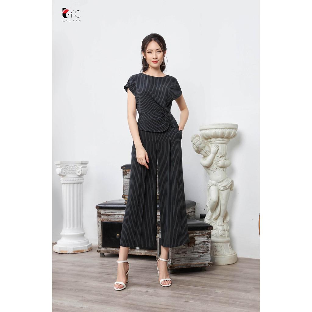 ✨Quần ống suông Tri'C Luxury kẻ xếp ly Đen Q020820