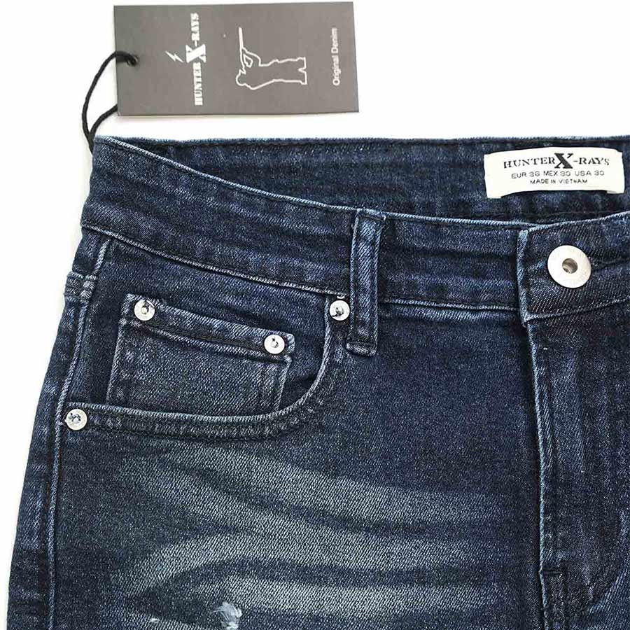 Quần Short Jeans Nam Rách Cao Cấp HUNTER X-RAYS Form Slim Thun Màu Xanh Đậm S78 Đặc điểm nổi bật: Nút được đúc nguyên khối bằng đồng và nổi bật thương hiệu HUNTER X-RAYS đảm