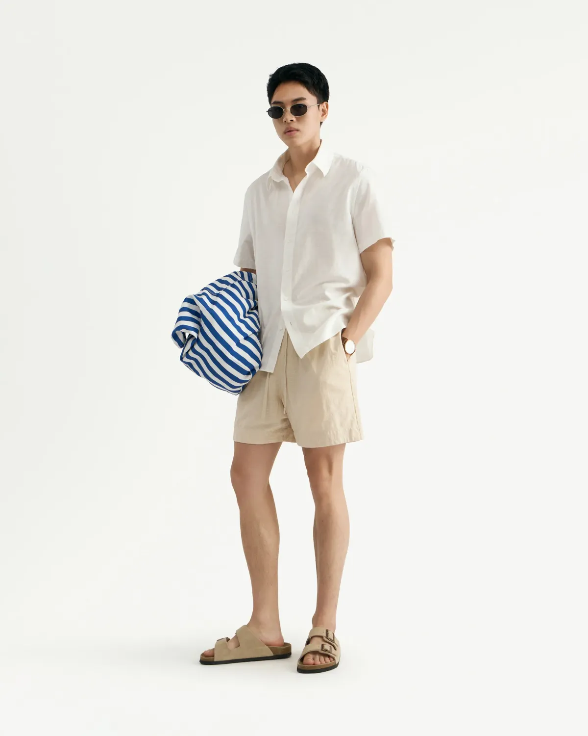 Quần Short Vải texture Lưng Thun Dây Rút Trơn Form Loose - RT 10S25PSH051 | ROUTINE CÀ MAU Đặc điểm nổi bật Form : Relax Fabric : Cotton Gender: Nam Collection: Essential 25 Thông tin