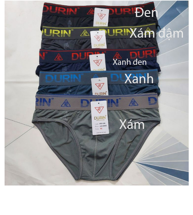 Durin Mã sản phẩm:DR 606 Huớng dẫn chọn size Quần lót nam cao cấp Durin Chất liệu lưới tốt nhất mềm mại 4 chiều thoáng mát dễ chịu, kết hợp lưng co giãn tốt bền đẹp. Kích thuớt:M, L, XL, 2X, 3X, 4X Màu sắc:Xanh đen, Xám nhạt, Xám Đậm, Xanh ghi, Đen .Chất liệu vải:Quần lót nam cao cấp Durin Chất liệu lưới tốt nhất mềm mại 4 chiều thoáng mát dễ chịu, kết hợp lưng co giãn tốt bền đẹp.
