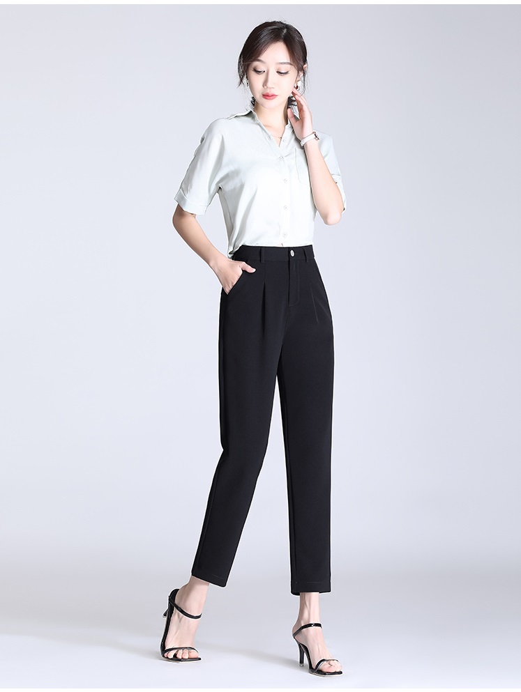 Quần tây nữ đĩa lệch 9 tấc sẽ là sự lựa chọn hoàn hảo cho những người phụ nữ yêu thích phong cách thanh lịch và sang trọng. - Vải Hàn Quốc không nhăn: Chất