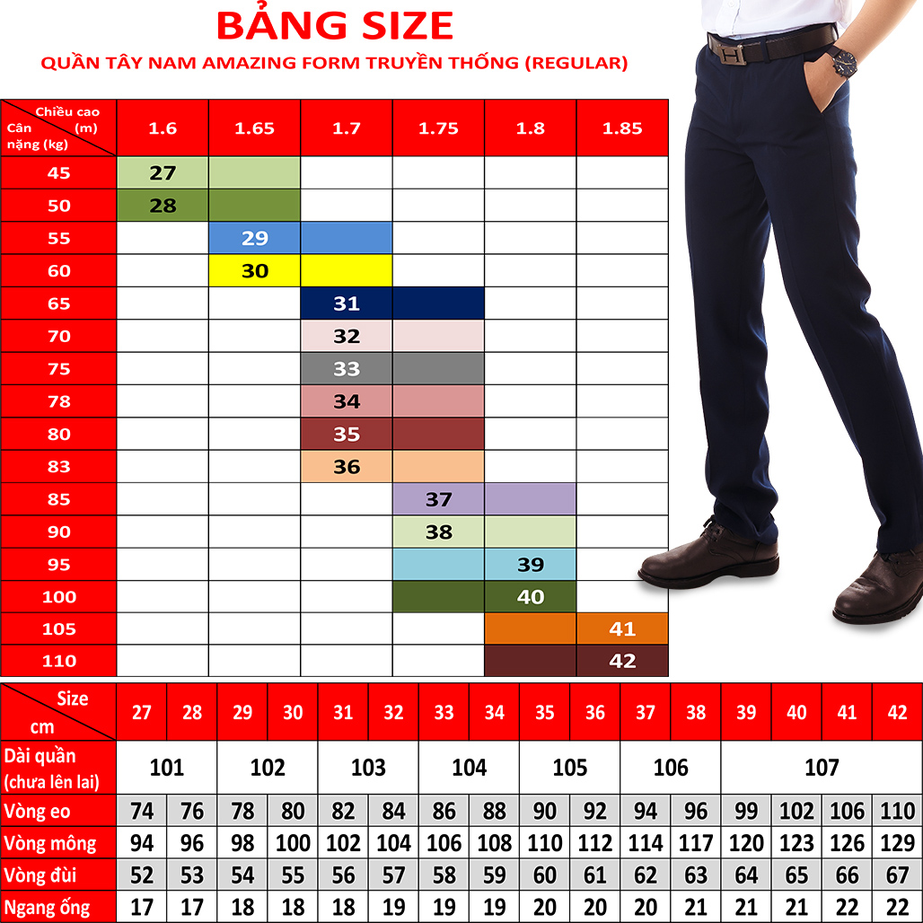 - Quần tây nam loại này shop có size từ bé 20kg đến người lớn 100kg. Bài này đăng bán quần người lớn, size từ 27 đến 42, tương đương từ 45-100kg. Bạn cần quần tây cho bé vui lòng tìm xem thêm trong shop nhé !