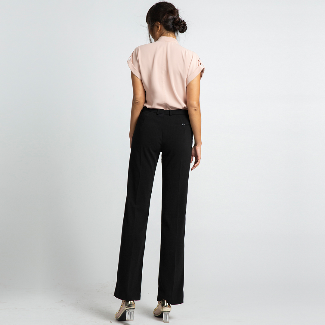 Quần Tây đen, áo sơ mi, áo kiểu chính là sự kết hợp dễ dàng nhất cho phụ nữ dù đi đến bất kỳ đâu. Quần Tây đen luôn phù hợp với bất kỳ công ty nào cho dù quy định trang phục của họ có khắt khe đến đâu.