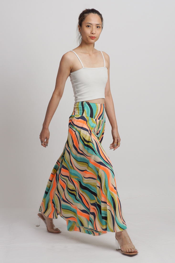 Quần Xòe Cotton Cao Cấp Luna Llena, chất lụa mềm mại, dáng váy xòe rũ. Lưng thun co giãn phần eo. Dài 100cm. Phù hợp đi biển, dạo phố, công sở, hoặc dự tiệc. Hướng