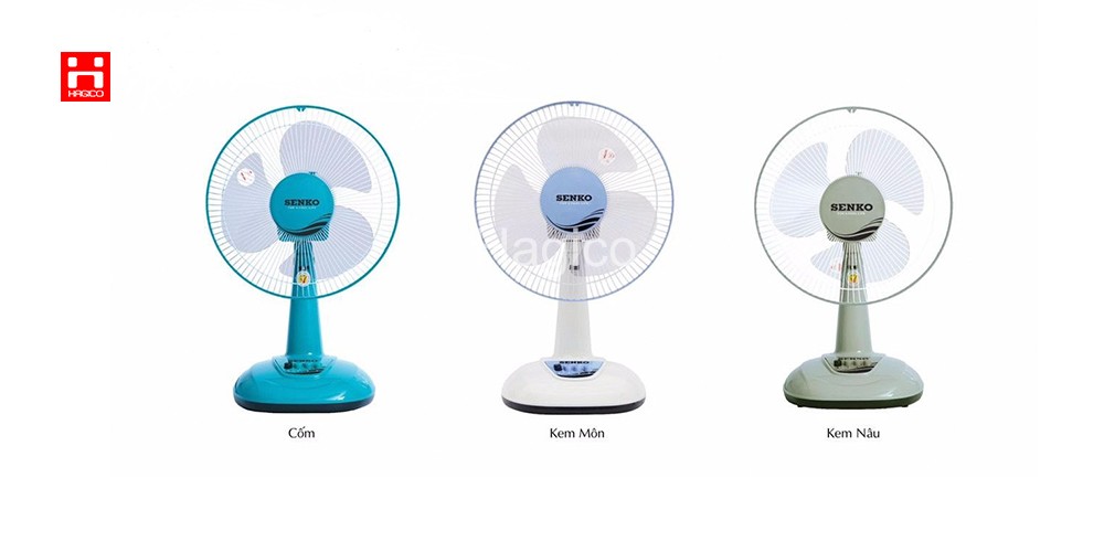 Quạt bàn Senko B1213 thiết kế nhỏ gọn, màu sắc bắt mắt, công suất hoạt động 40W làm mát hiệu quả với 3 cánh quạt, động cơ bạc thau với chất liệu 100% dây đồng