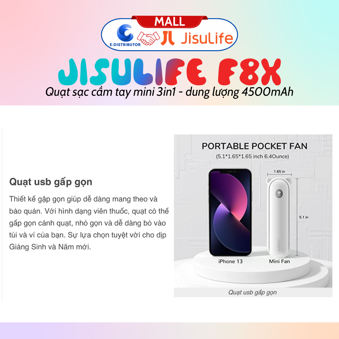 - Tên sản phẩm: Quạt cầm tay mini JisuLife F8X 4500mAh - Tích hợp Sạc dự phòng, Đèn pin