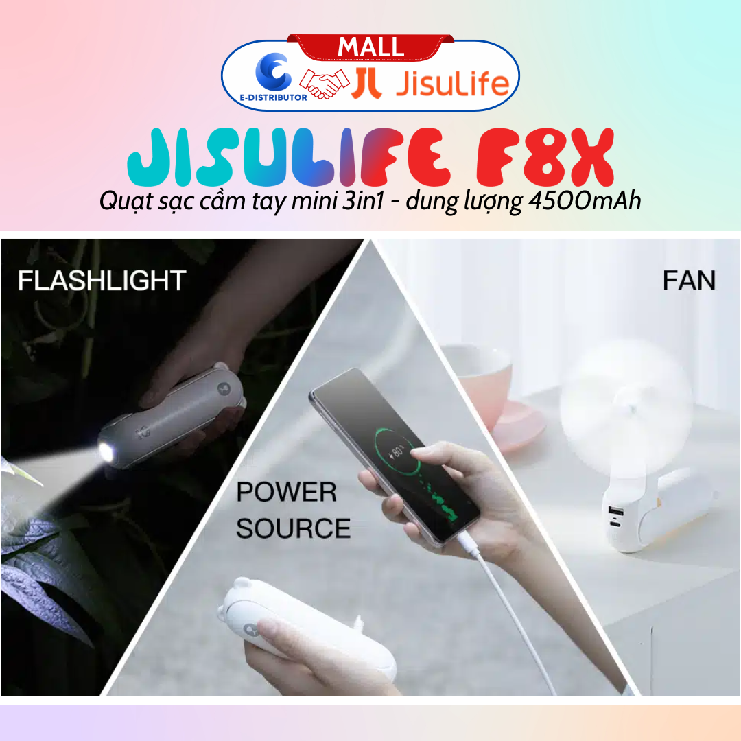 Quạt Đa Năng 3 Trong 1 Kiêm Đèn Pin Và Sạc Dự Phòng Pin 4800mAh - JISULIFE F8X