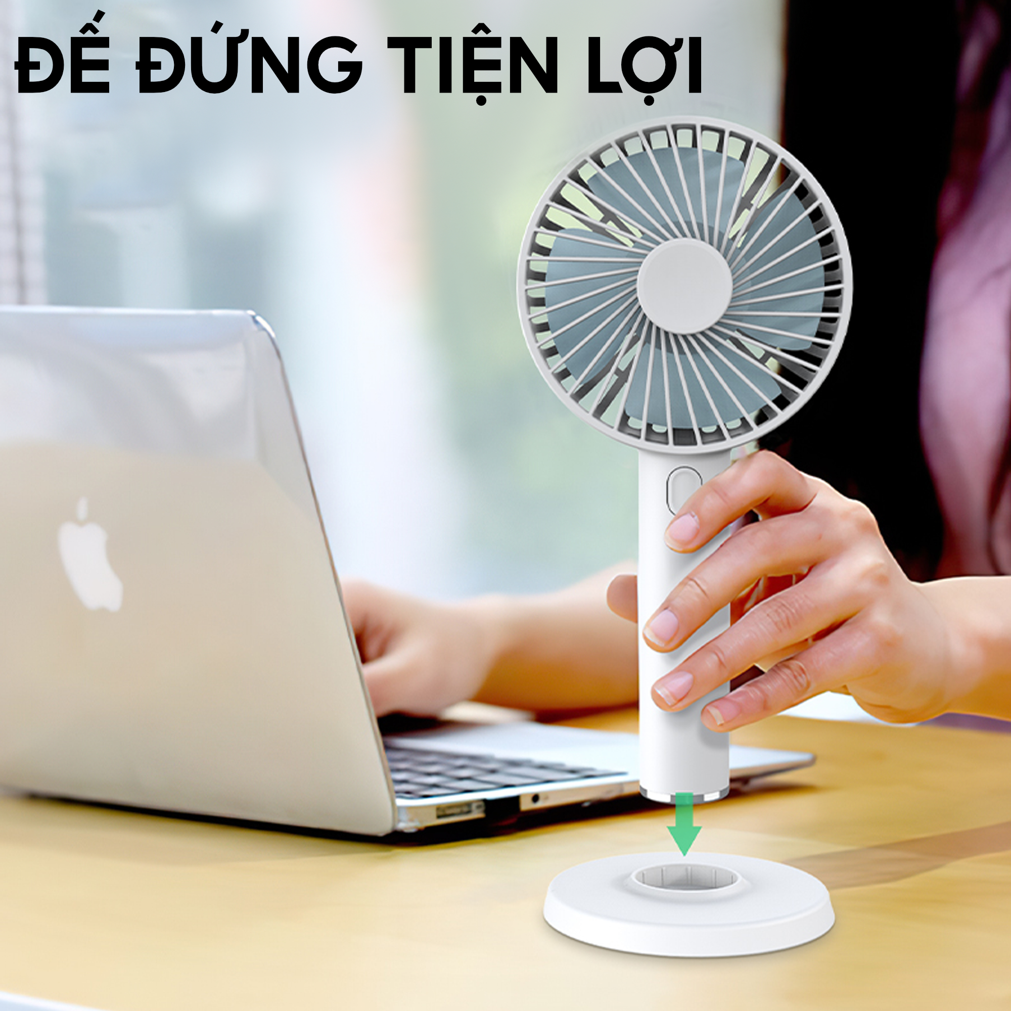 - Đế stand , có thể dựng quạt mà không cần cầm trên tay liên tục