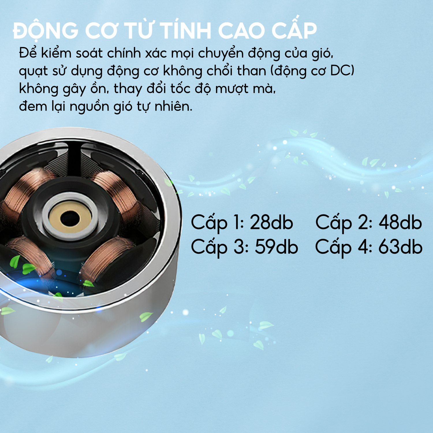 - Động cơ từ tính bền bỉ và êm ái với 4 tốc độ gió