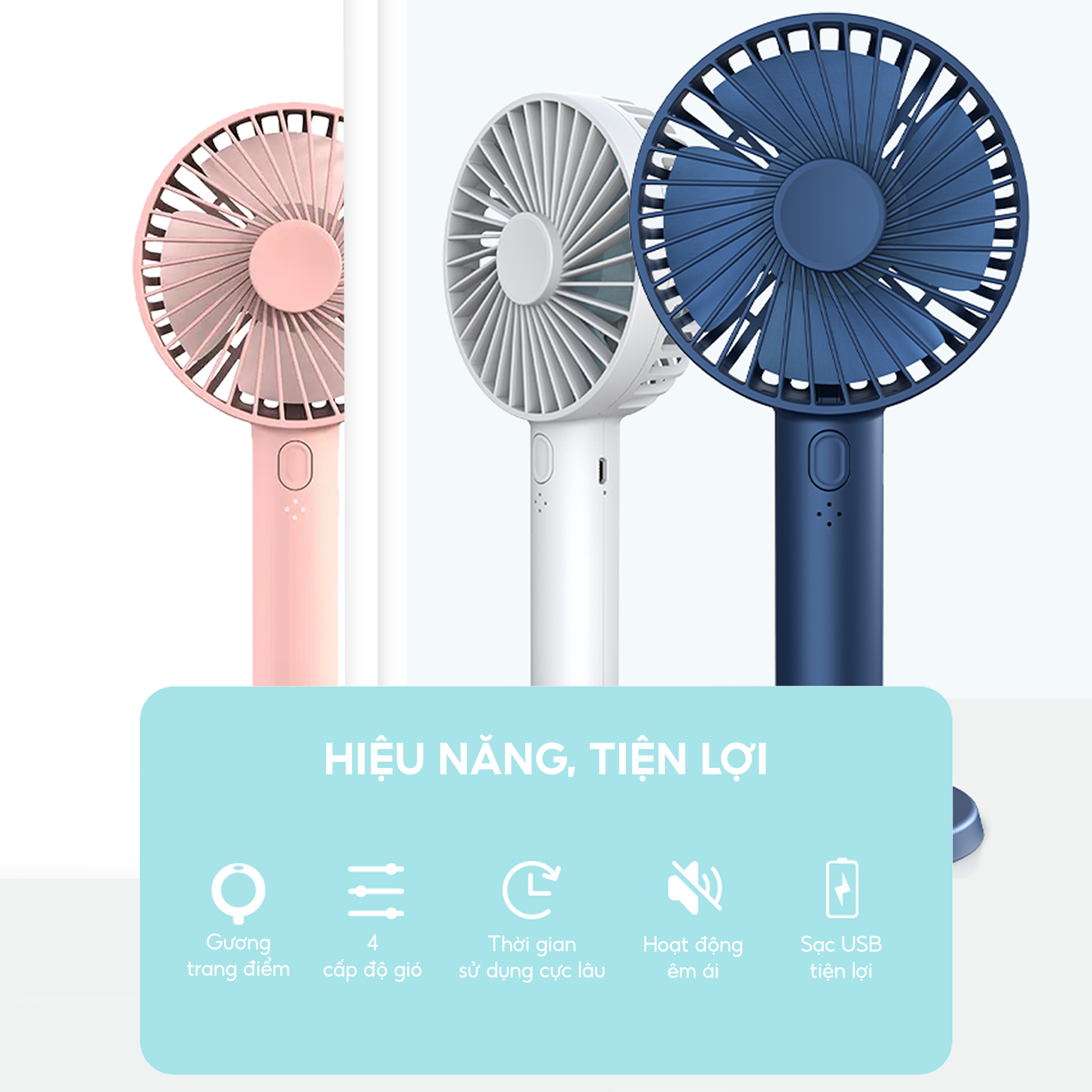 TÍNH NĂNG SẢN PHẨM: Quạt được sử dụng với nhiều mục đích làm mát khác nhau. Phù hợp cho việc đi du lịch, đặc biết là nơi có khí hậu nóng. Thiết kế nhỏ gọn,