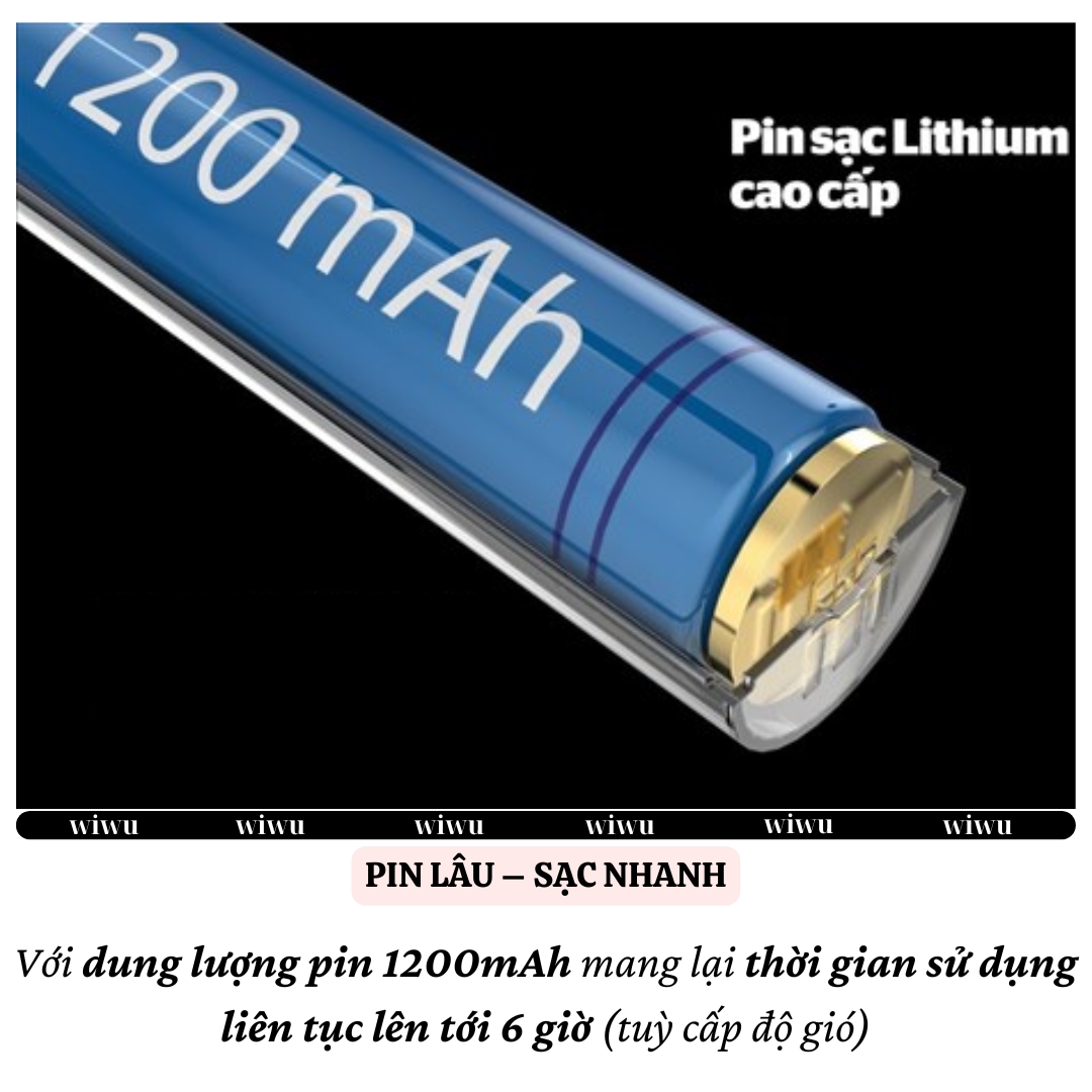[QUẠT MINI SÒ LẠNH] Wi WU Wi-FS016 ChillMate – 100 Cấp Độ Gió, Pin 3000mAh, Gió Mạnh, Làm Mát Nhanh ️ MÁT LẠNH TỨC THÌ – SẠC MỘT LẦN, DÙNG CẢ NGÀY Điểm nổi bật: