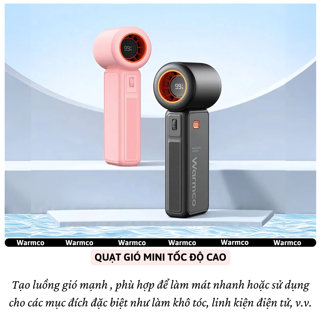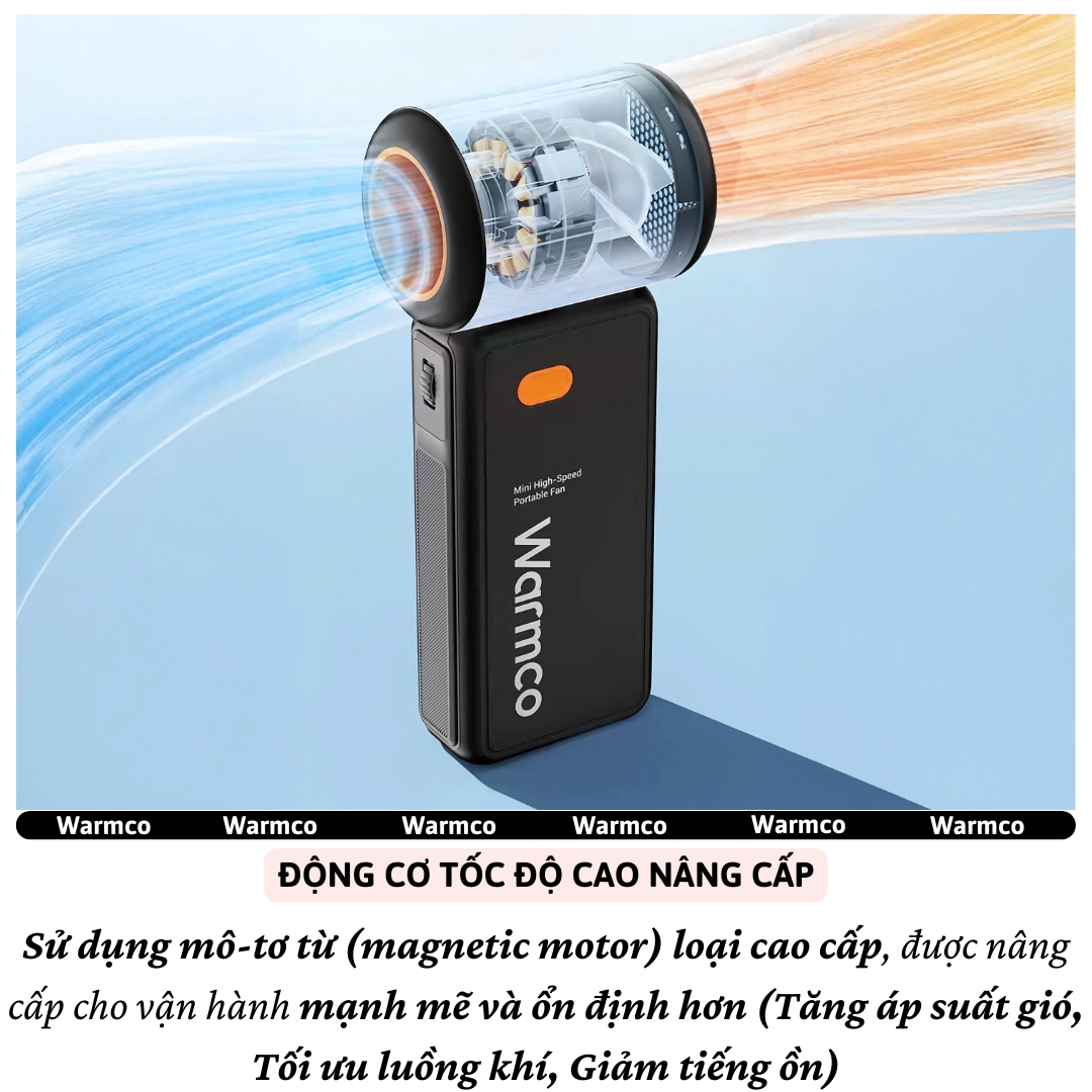 ✨Quạt cầm tay turbo mini siêu mát Pin trâu 5000 mAh, nhỏ gọn linh hoạt hiệu Hotcase WARMCO - 100 chế độ gió, dùng liên tục 18h (tùy mức gió), thiết kế đẹp, bền - hàng nhập khẩu