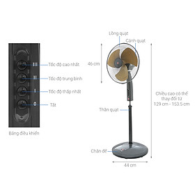 THIẾT KẾ CHẮC CHẮN, BỀN BỈ, VỮNG CHẮC, AN TOÀN Quạt được thiết kế bằng chân đế sắt tròn, rộng gắn với thanh trụ bằng khớp nối chắc chắn, thanh trụ bằng chất liệu cao