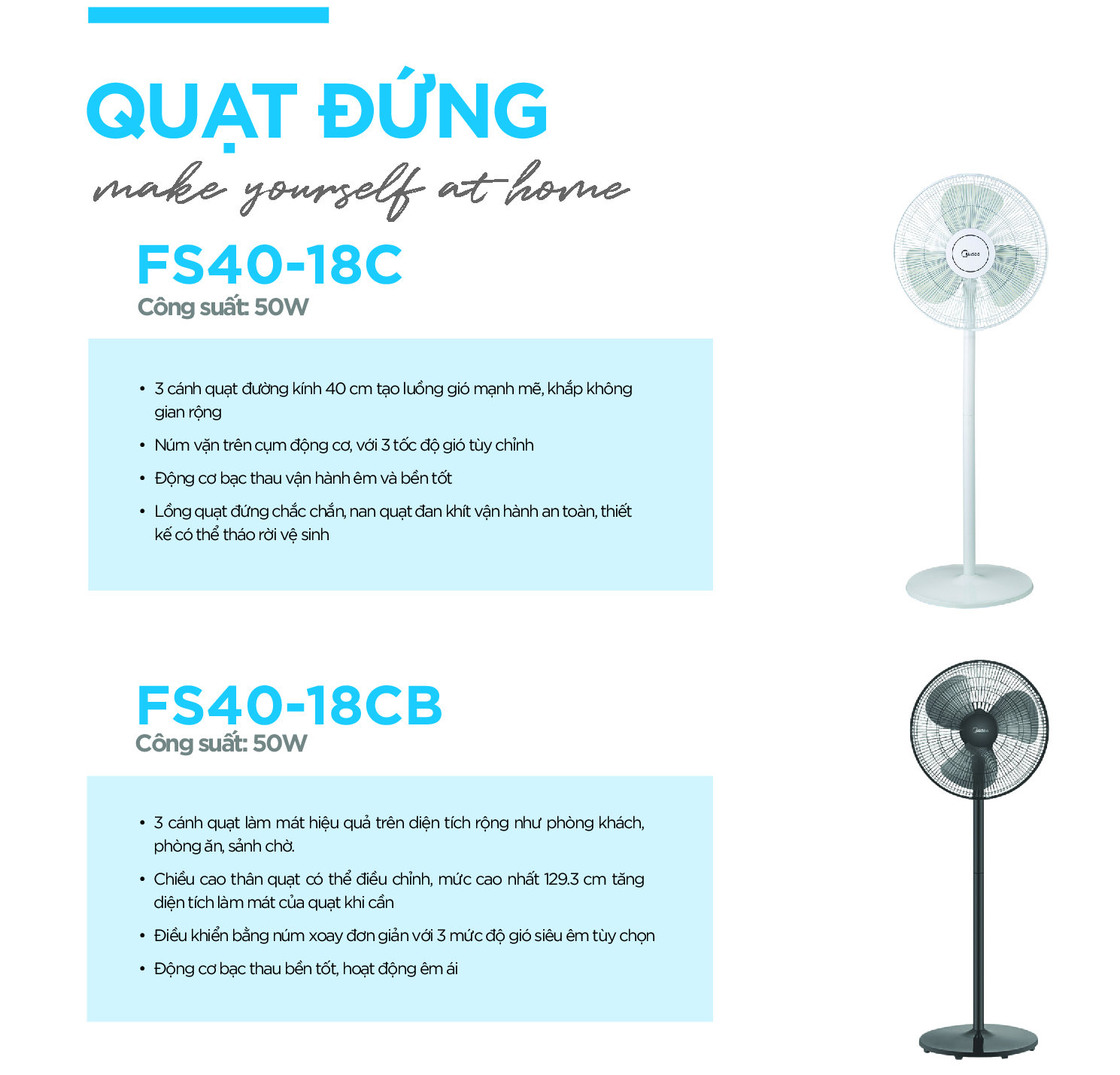 ✨Quạt Đứng, Quạt Cây 3 Cánh Midea FS40-18C (Quạt Điện Hàng Chính Hãng, Công Suất 50W, Chỉnh Gió 3 Tốc Độ)