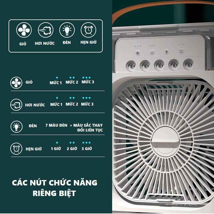 - Quạt phun sương mini làm mát cực nhanh bằng công nghệ ion không khí tiên tiến.