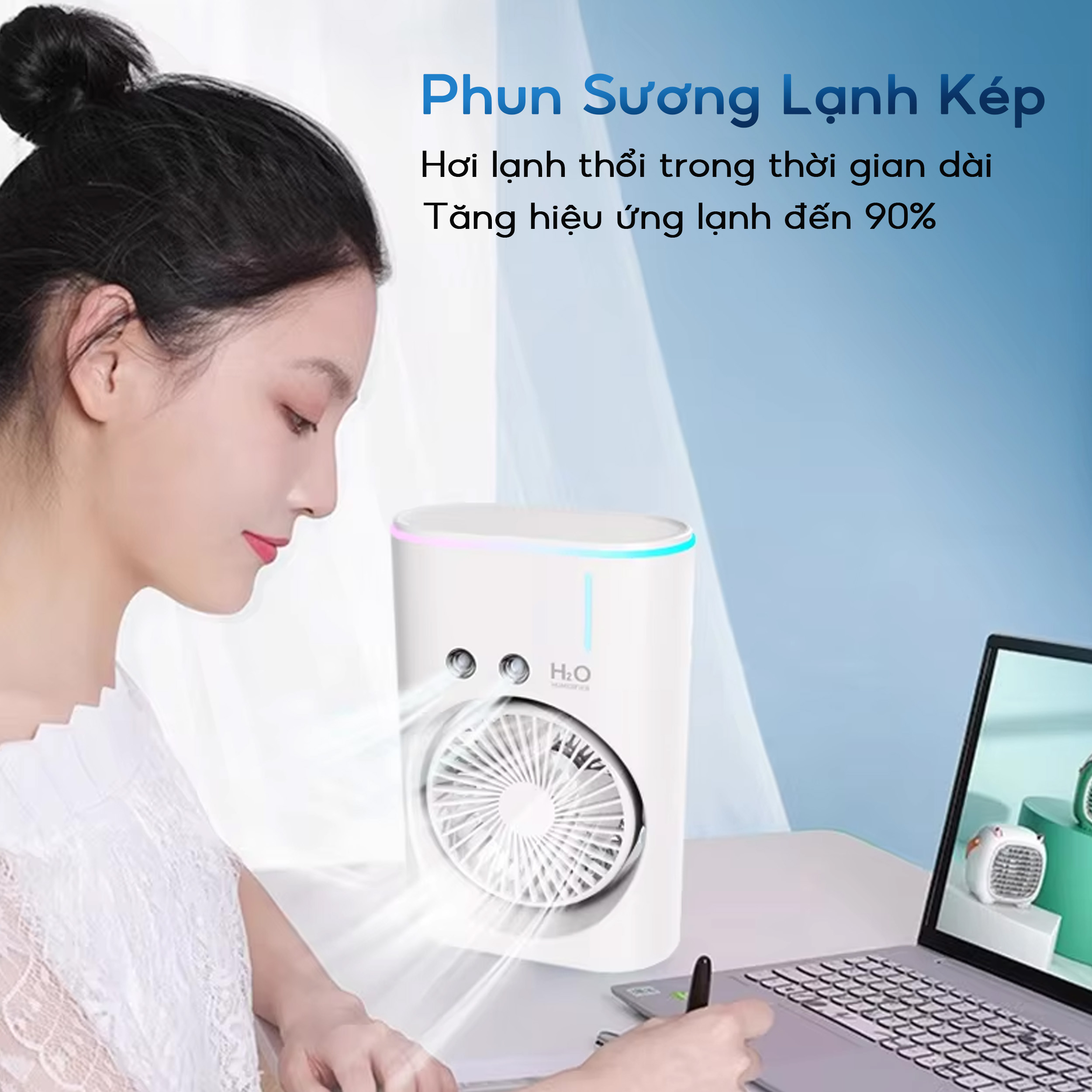 Quạt điều hoà hơi nước mini cool fan, quạt hơi nước làm mát phun sương để bàn 3 chế độ gió, dung tích bình lớn tích hợp đèn led, quạt phun sương mini để bàn