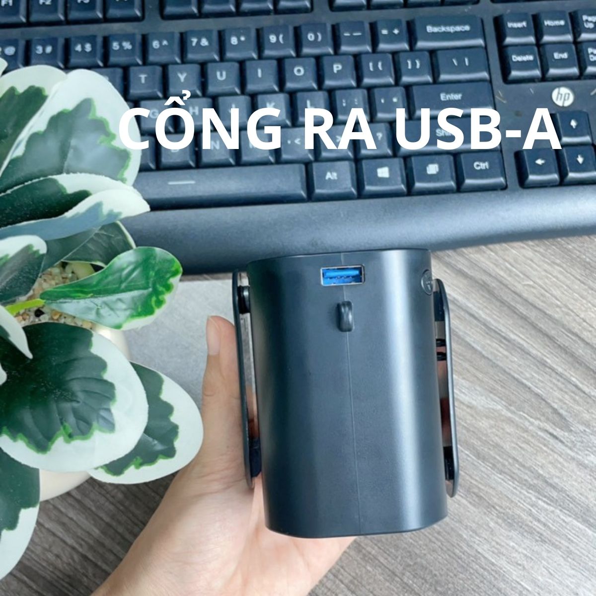 • Đặc điểm: quạt kẹp vào thắt lưng làm mát cơ thể, có đèn chiếu sáng, có dây đeo, có cổng ra USB-A dùng như sạc dự phòng