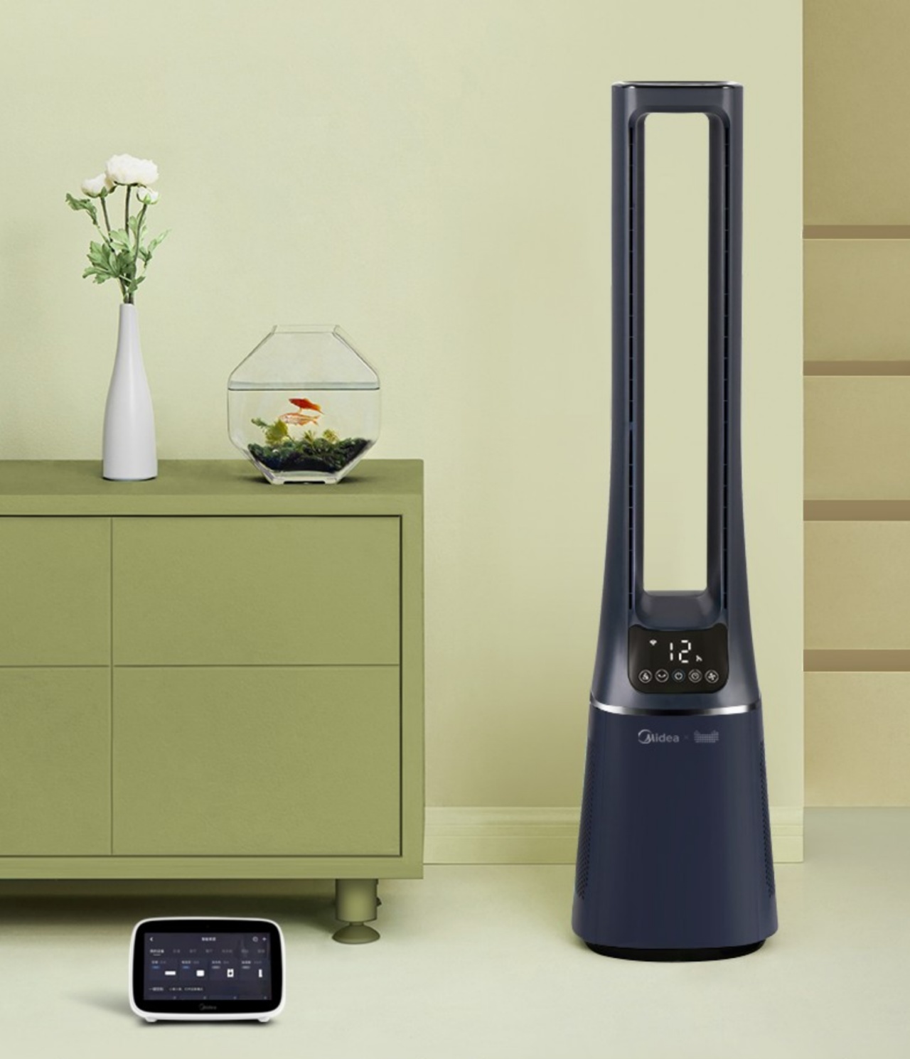 Quạt không cánh Midea AMS150E-TM, tích hợp chức năng lọc không khí được điều khiễn bằng ứng dụng thông minh.