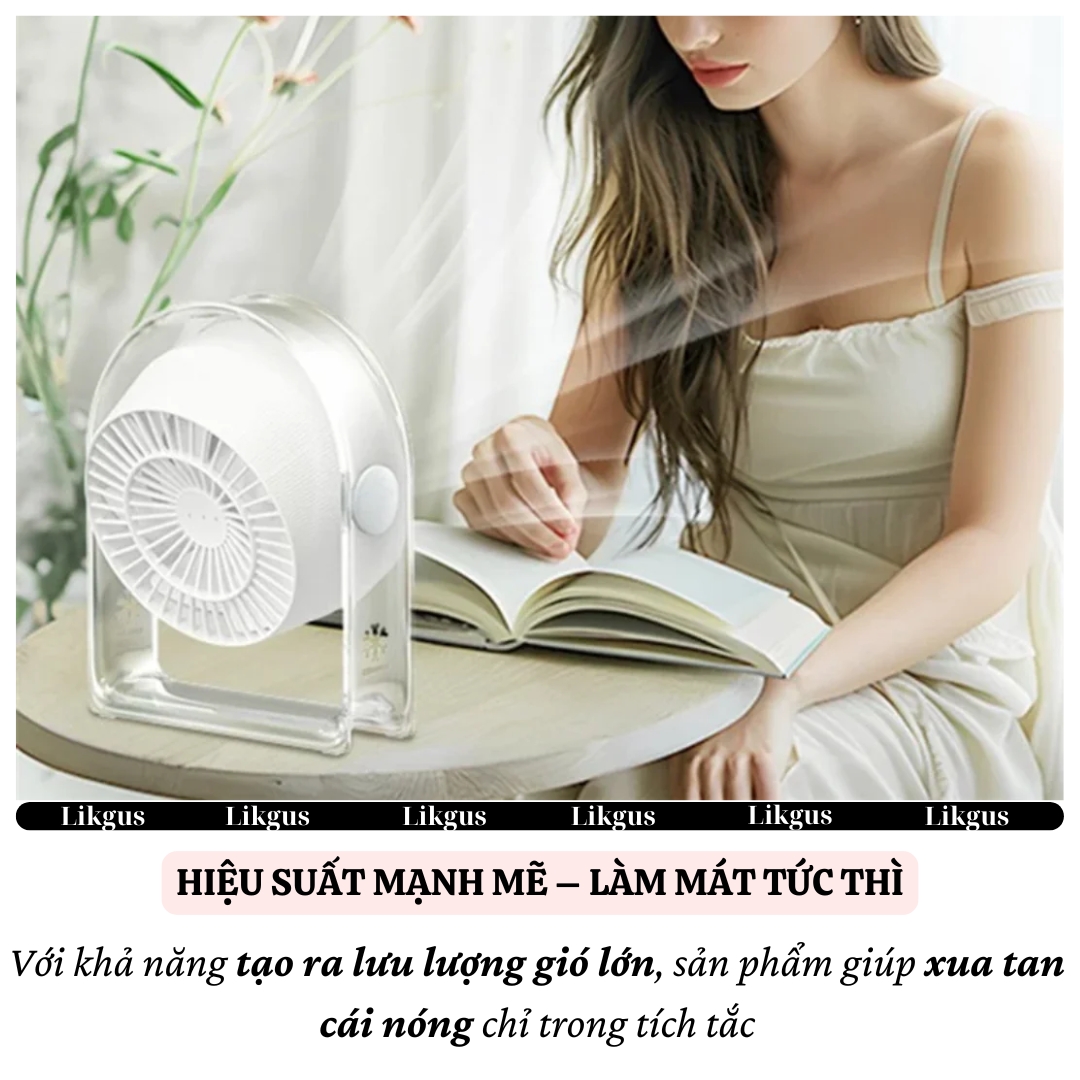 ️ Quạt Để Bàn Mini hiệu HOTCASE Snow Wi-FS07 – Gió Mạnh, Êm Ái, Thời Trang ️ Giải nhiệt mùa hè cùng thiết kế hiện đại, pin trâu 2000mAh và 4 chế độ gió linh hoạt! Tính Năng Nổi Bật: Gió Mạnh Mẽ – Làm Mát Siêu Tốc: Dù nhỏ gọn vẫn sở hữu động cơ công suất cao, tạo luồng gió mạnh mẽ, thổi bay cái nóng chỉ trong vài giây. 4 Chế Độ Gió Tuỳ Chỉnh: Từ gió nhẹ dễ chịu đến gió mạnh mẽ – bạn hoàn toàn kiểm soát trải nghiệm làm mát theo nhu cầu. Đầu Quạt Linh Hoạt: Điều chỉnh thủ công lên xuống giúp bạn dễ dàng hướng luồng gió đúng vị trí mong muốn. Thiết Kế Turbine – Êm Ái & Ổn Định: Cánh quạt dạng turbine giúp giảm rung lắc, giảm tiếng ồn, tăng hiệu quả làm mát và hoạt động êm ái suốt ngày dài. Pin Sạc 2000mAh – Dùng Tới 290 Phút: Thoải mái sử dụng mà không lo dây điện vướng víu. Một lần sạc, tận hưởng gió mát liên tục gần 5 tiếng! Vật liệu Cao Cấp ABS + PC: Chống va đập, chắc chắn và bền bỉ – lý tưởng cho cả bàn làm việc, phòng ngủ hay mang theo đi du lịch. Sạc Type-C Tiện Lợi: Hỗ trợ sạc nhanh, dễ dàng kết nối với các thiết bị hiện đại. Bộ Sản Phẩm Bao Gồm: