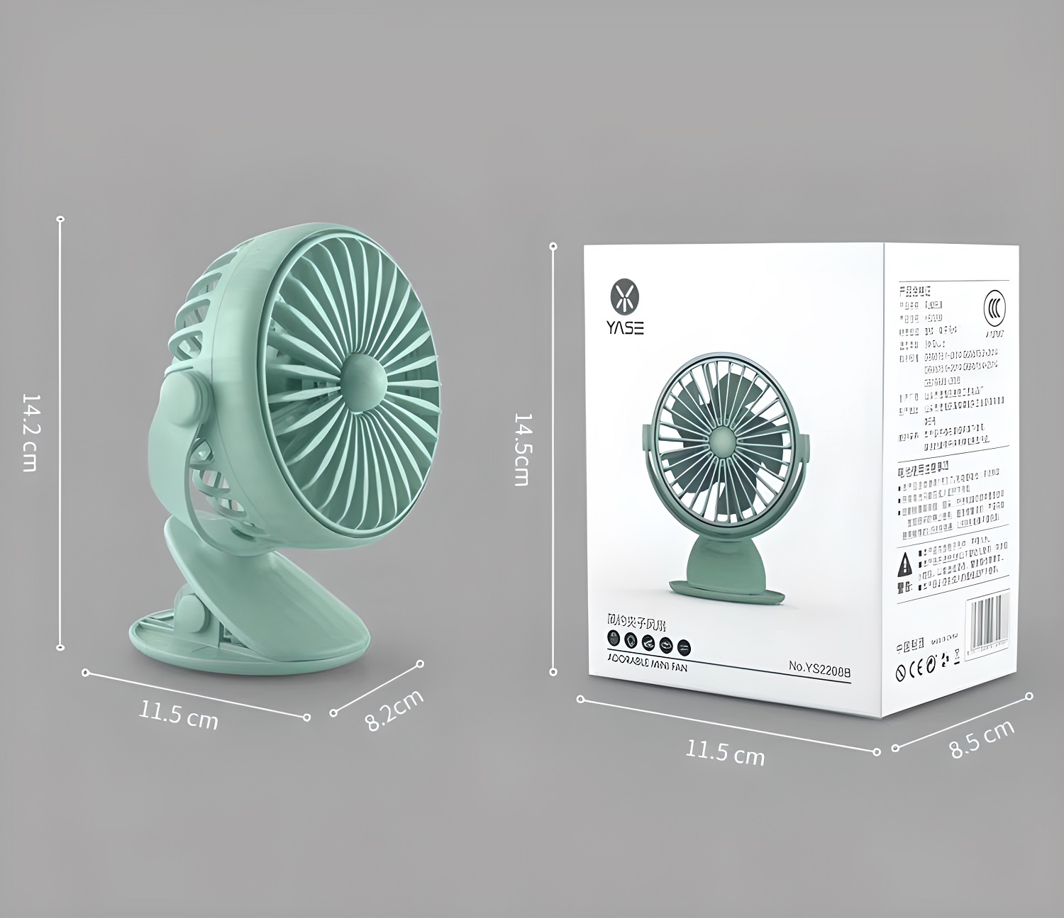 Quạt mini để bàn kiêm quạt kẹp kết hợp với đèn ngủ hiệu HOTCASE Yase YS-2208B sử dung pin sạc phù hợp khi đi học, du lịch, dã ngoại và văn phòng . Thiết kế nhỏ gọn, tiện lợi giúp bạn có thể mang theo khắp mọi nơi. Sản phẩm có trang bị đèn ngủ tiện dụng tiện lợi và đa năng. Chất liệu nhựa dẻo + silica gel mềm mại.