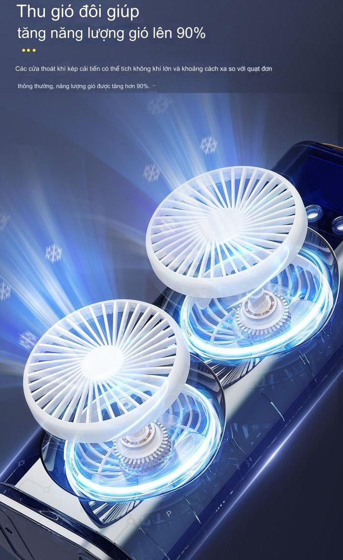 Quạt phun sương Youpin AQUA BREEZE, 2 lồng quạt, có đèn LED, xoay tốc năng 90° làm mát rộng, pin dung lượng lớn