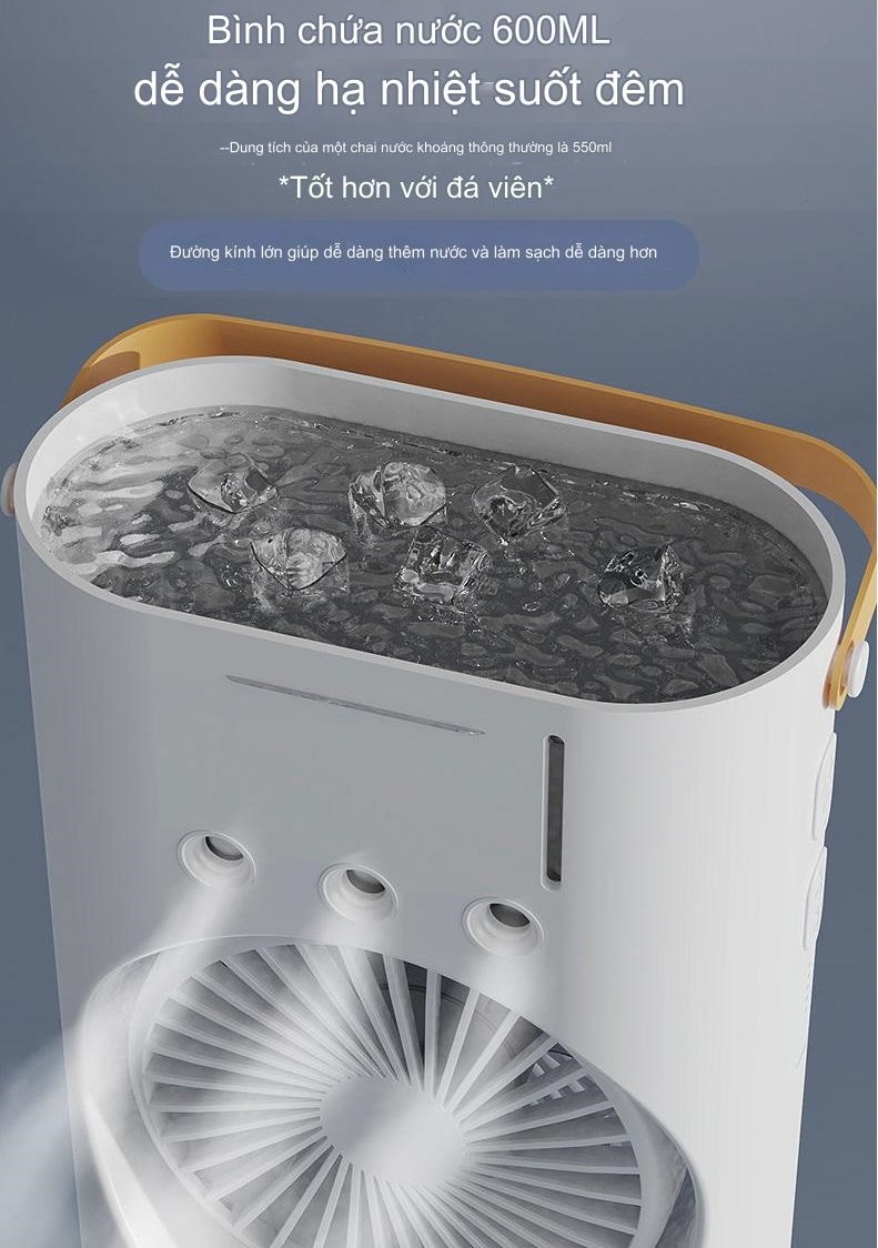 Quạt điều hoà hơi nước mini cool fan, quạt hơi nước làm mát phun sương để bàn 3 chế độ gió, dung tích bình lớn tích hợp đèn led, quạt phun sương mini để bàn