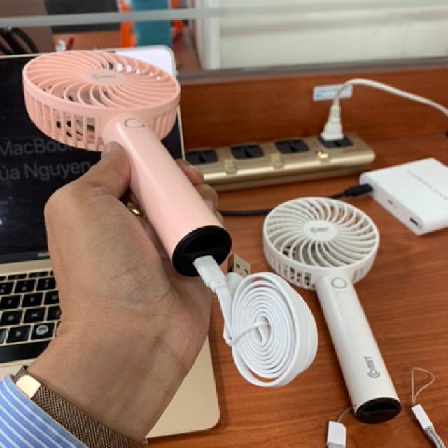 - Có cổng sạc USB => Tặng kèm Cáp sạc Micro USB, Đế sạc và Dây treo dễ thương Thiết kế nhỏ gọn, hiện đại: Quạt Sạc Comet CRF1004 có thiết kế nhỏ gọn, đẹp mắt, có thể mang theo mọi lúc mọi nơi. Sản phẩm thích hợp cho nhiều đối tượng sử dụng khác nhau: nhân viên văn phòng, các bạn sinh viên, Cổng sạc bằng đầu USB tiện dụng: Quạt sạc Comet có cổng sạc bằng đầu USB, dễ dàng sạc lại cho quạt bằng cách cắm trực tiếp cổng sạc USB vào máy tính. Bạn có thể sạc pin cho quạt bằng cục sạc dự phòng của điện thoại ngay khi đi du lịch hoặc sạc cho quạt trực tiếp bằng điện. Dung lượng pin 2000mAh: Với viên pin Lithium dung lượng 2000mAh, quạt có thể đáp ứng nhu cầu liên tục 9 giờ ở mức thấp và 2 giờ sử dụng ở tốc độ cao nhất. 3 cấp độ gió: Quạt sạc đa năng có 03 cấp độ gió giúp bạn chủ động được tốc độ gió khi cần sử dụng: nhẹ dịu hoặc gió mạnh. Sản phẩm được làm bằng chất liệu nhựa ABS cao cấp, có độ bền cao và sử dụng mô tơ không chổi than yên tĩnh, không nóng máy, đảm bảo an toàn cho người dùng. Sạc lại cho Quạt: Có 02 cách sạc:
