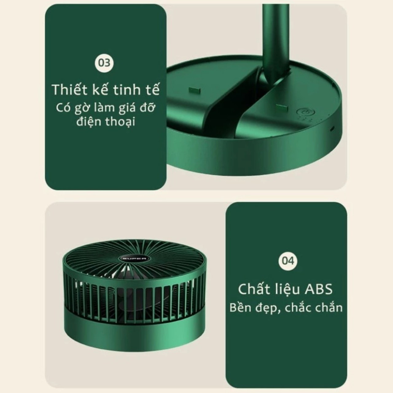 Quạt tích điện để bàn mini gấp gọn là sự lựa chọn hoàn hảo cho những ai cần một chiếc quạt nhỏ gọn, tiện lợi nhưng vẫn đảm bảo khả năng làm mát hiệu quả. Với thiết kế thông minh, tính năng linh hoạt và khả năng sạc qua cổng USB, đây sẽ là người bạn đồng hành không thể thiếu trong những ngày hè nóng bức.